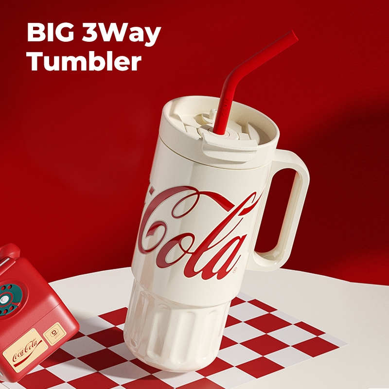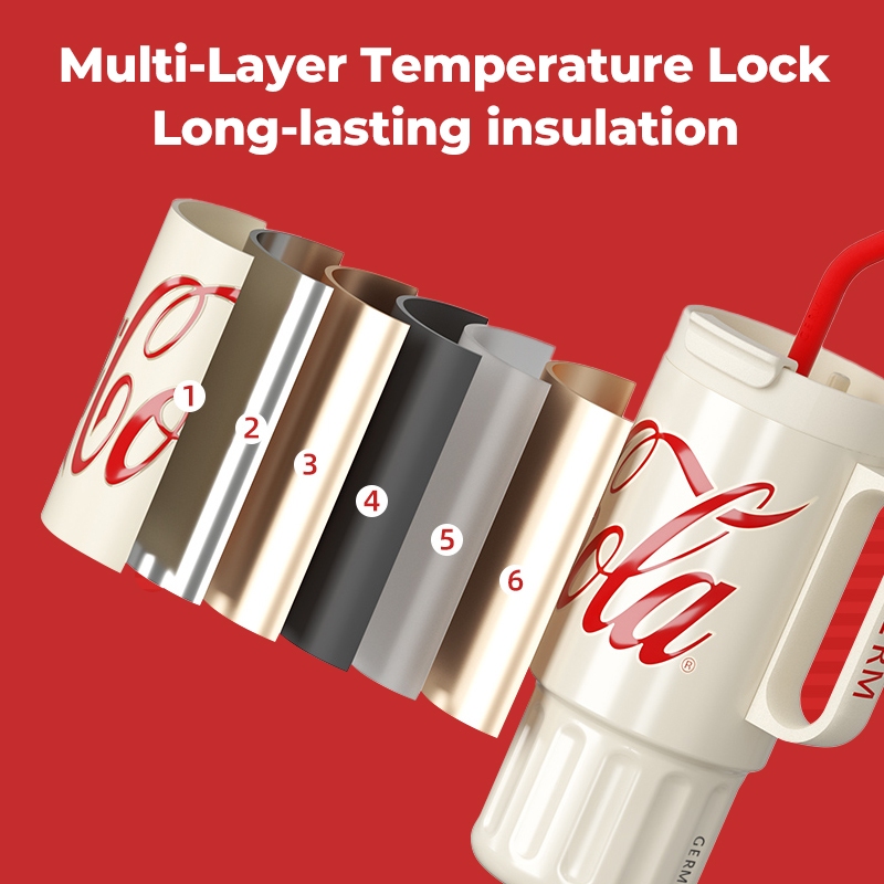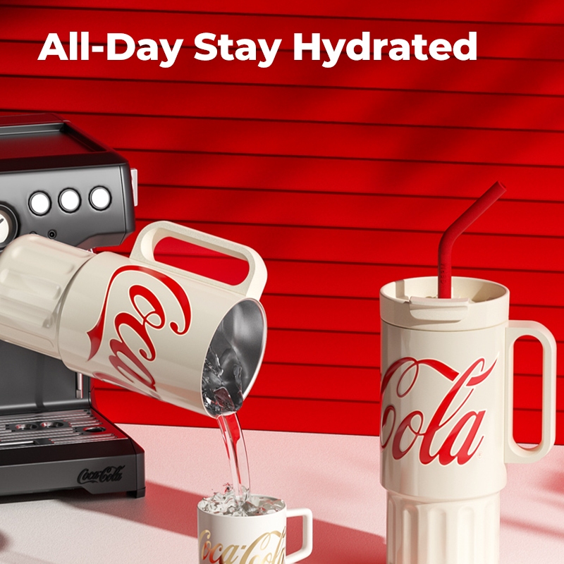 COCA COLA กระบอกน้ำเก็บอุณหภูมิ แก้วขนาดใหญ่เก็บความเย็น พร้อมหลอด แก้วของขวัญ ทำจากสแตนเลส 316 แก้วน้ำ 1200ml