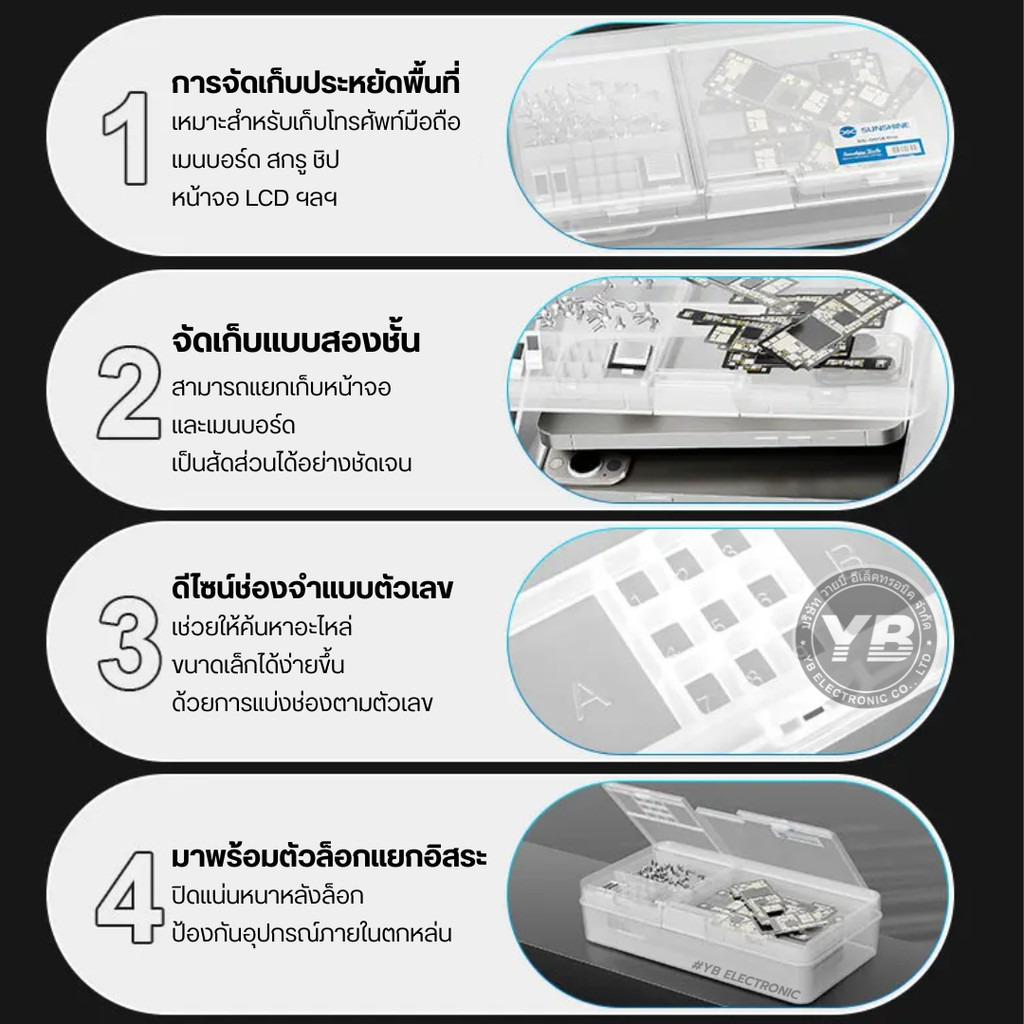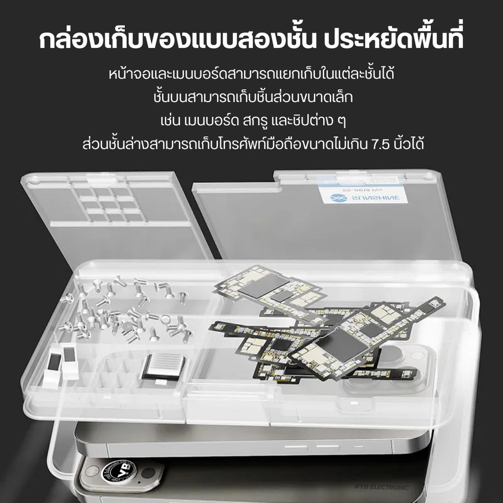 กล่องเก็บอะไหล่ 2 ชั้น SUNSHINE SS-001A Pro ชั้นบนเก็บสกรู ชิป บอร์ด ชั้นล่างวางมือถือหรือจอ