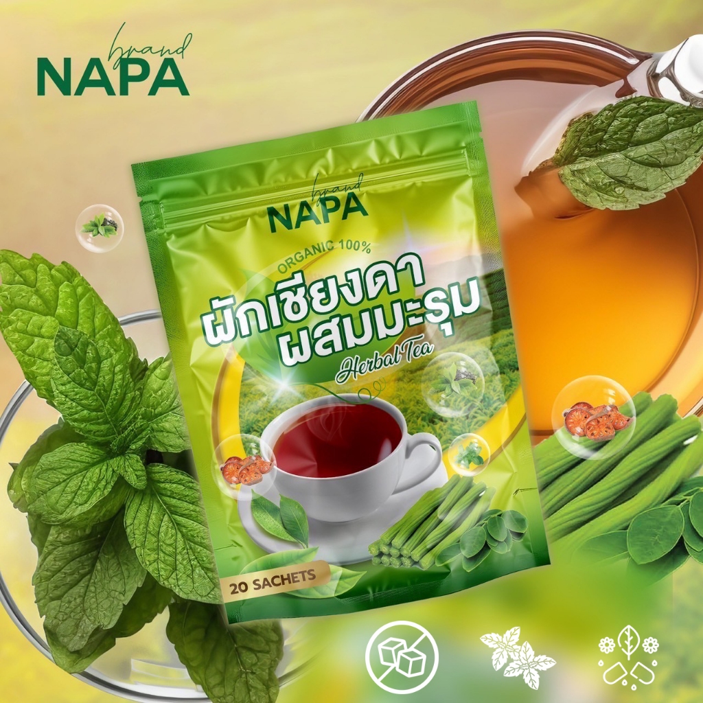 NAPA ชาสมุนไพร ผักเชียงดาผสมมะรุม สารสกัดเข้มข้น ของแท้ พร้อมทาน 1 ห่อ 20 ซอง
