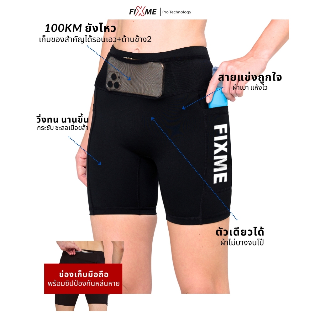 กางเกงวิ่ง ขาสั้น รุ่น Turrun (women) มีกระเป๋า6ช่อง กางเกงรัดกล้ามเนื้อ Fixme