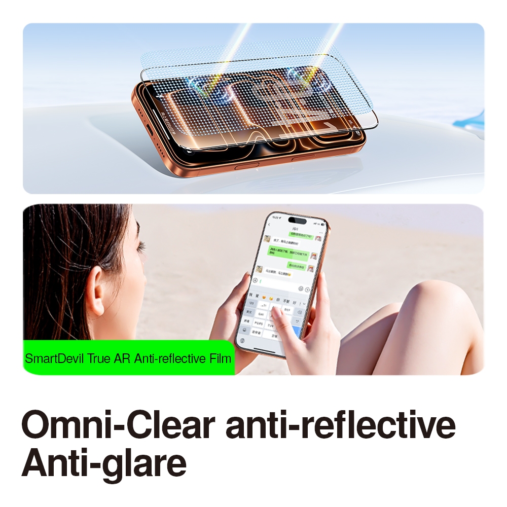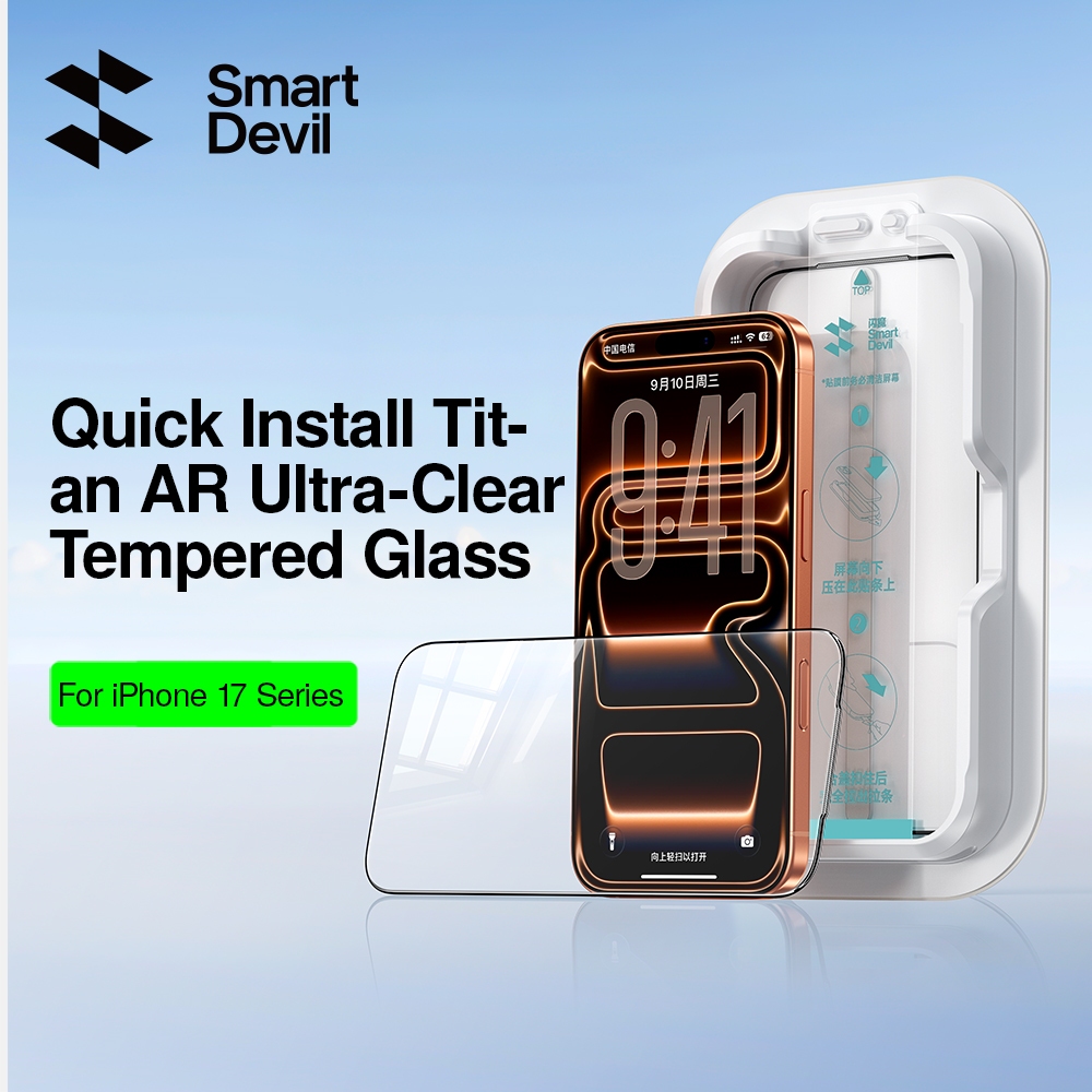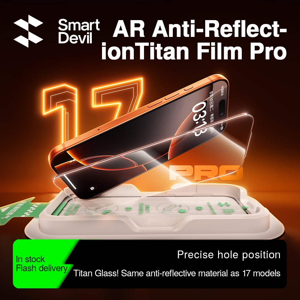 SmartDevil Quick ติดตั้ง Titan AR Anti-Reflective กระจกนิรภัยสําหรับ iPhone 17 Pro Max/17 Pro เต็มหน้าจอครอบคลุม Drop Protection