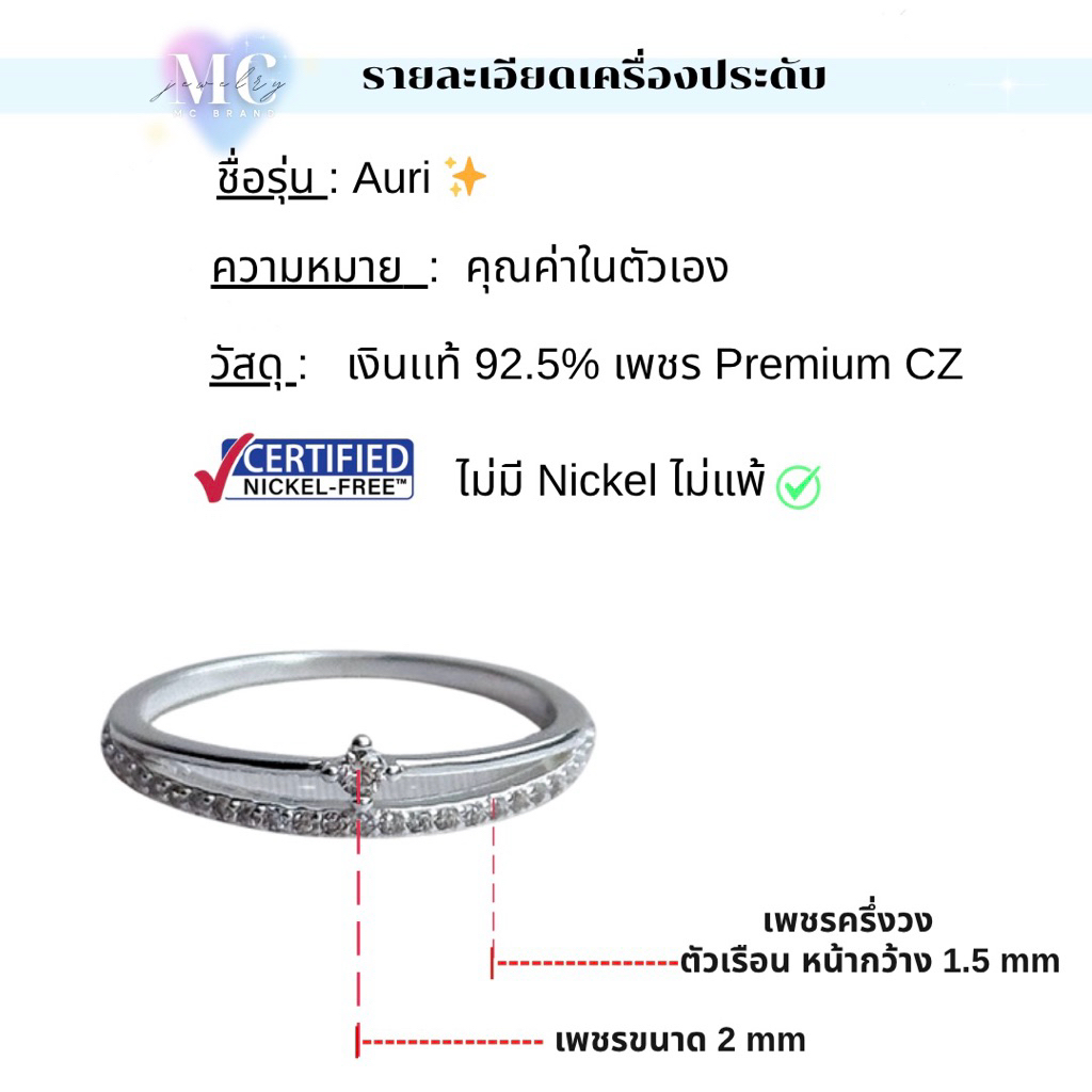 MCbrand.Jewelry 🤍แหวนเงินเเท้ 92.5% รุ่น Auri ✨ความหมายดี คุณค่าในตัวเอง💎 ไม่ลอก ไม่แพ้💎มีใบรับประกันเงินเเท้