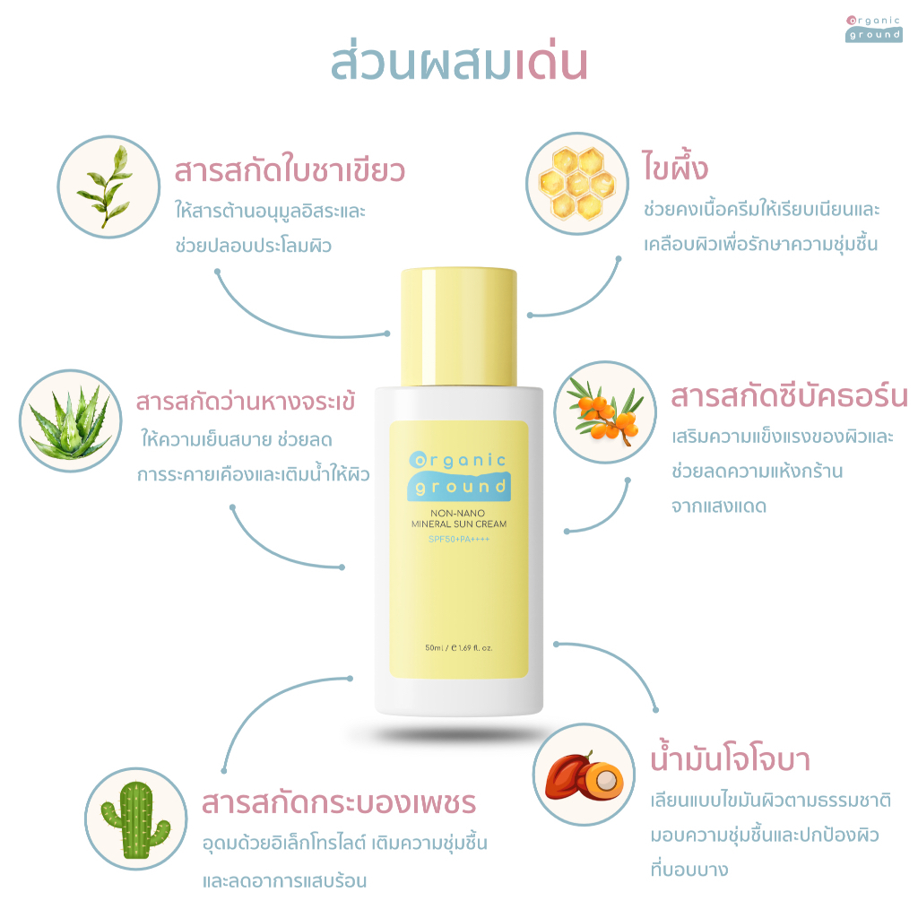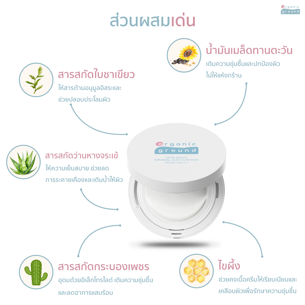 Organic Ground Mineral Sun Cream & Sun Cushion - ครีมและคุชชั่นกันแดด SPF50+PA++++ สำหรับเด็ก