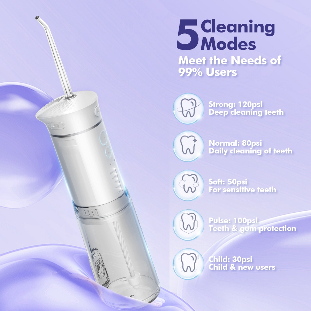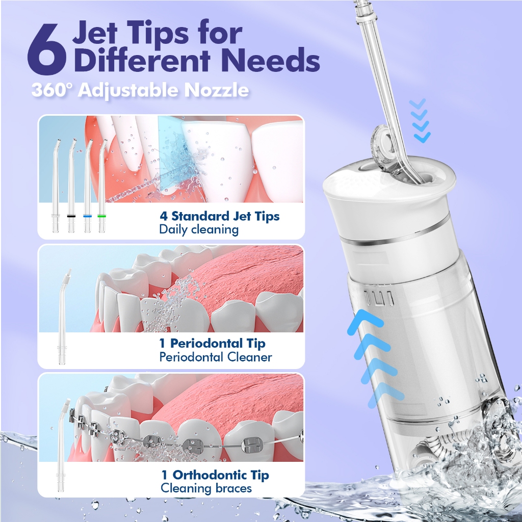 Bezvoi Y825 Water Flosser ไร้สาย Travel, Mini Oral Irrigator พร้อมถังน้ํา Telescopic, 6 เคล็ดลับ Jet, IPX7 กันน้ําไฟฟ้าแบบพกพาน้ําทําความสะอาดฟัน Picks