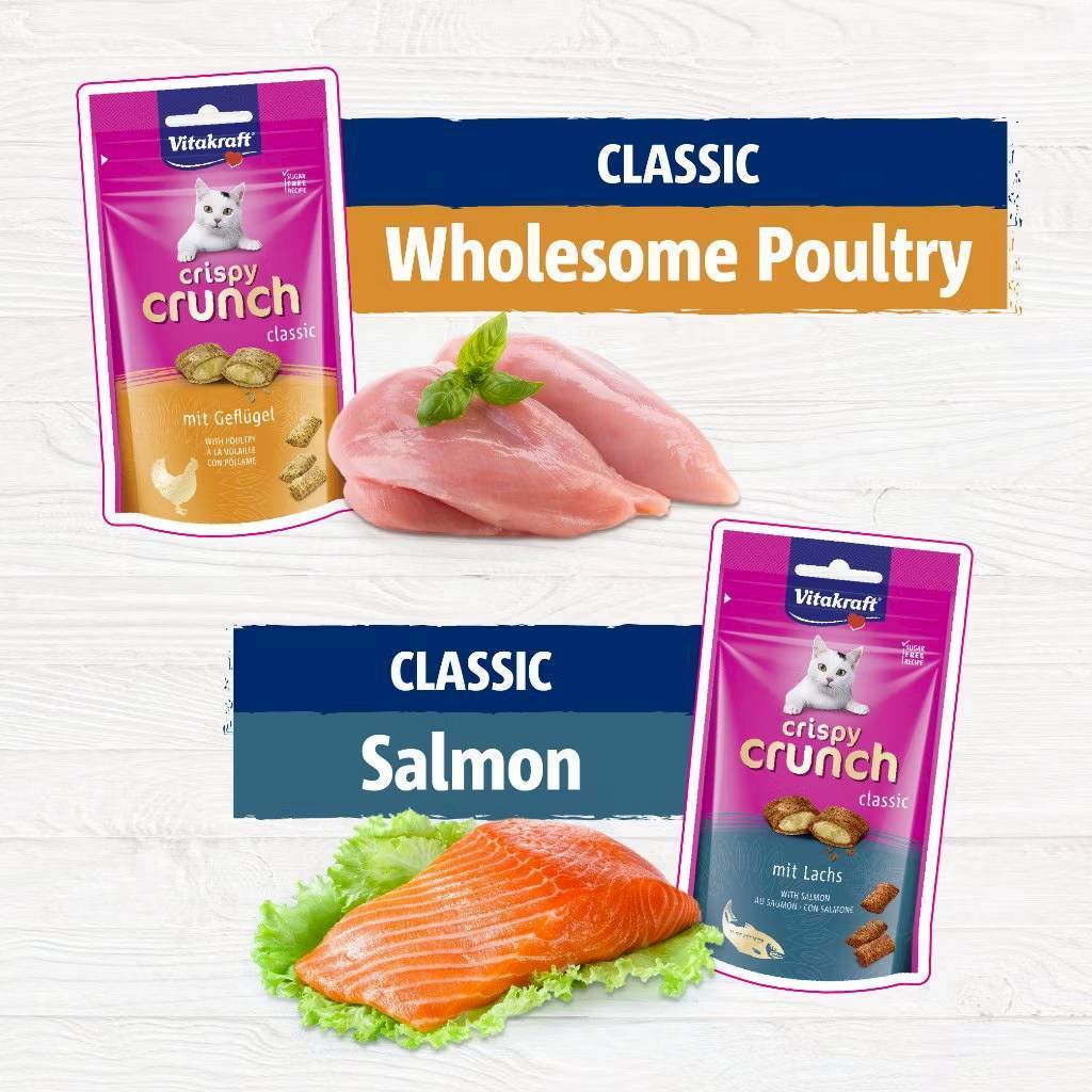 Vitakraft Crispy Crunch ขนมแมวกรุบกรอบ สอดไส้นุ่ม ขนาด 60 กรัม