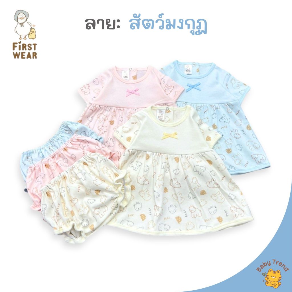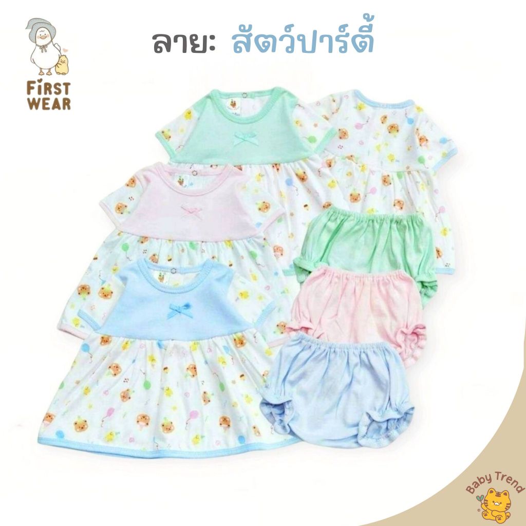 First Wear ชุดกระโปรงผ่าหลังสั้น 3-12 เดือน ไซส์ M-L ลายน่ารักๆ ผ้าคอนตอนหนานุ่ม (1 ชุด) | Babytrend