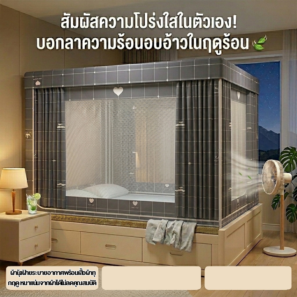 BOENIN มุ้งครอบผู้ใหญ่ มุ้ง มุ้งกันยุงมุ้งสามประตู 5ฟุต 6ฟุต 6.6ฟุต 4ฟุต 3.5ฟุต กันแมลง พร้อมม่านเตียงรอบมุ้ง