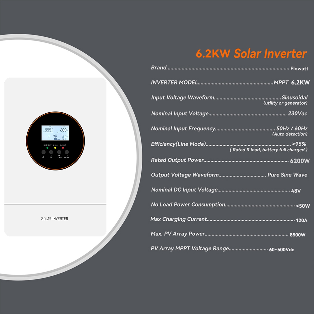 Flowatt 6.2KW Hybrid Inverter 220V Solar Inverter ในตัว 120A MPPT Solar Controller 48V ระบบ