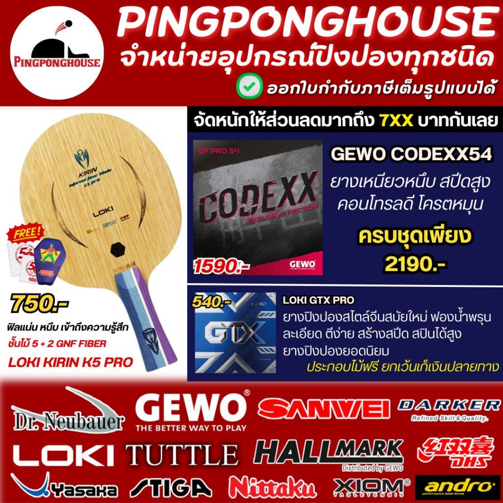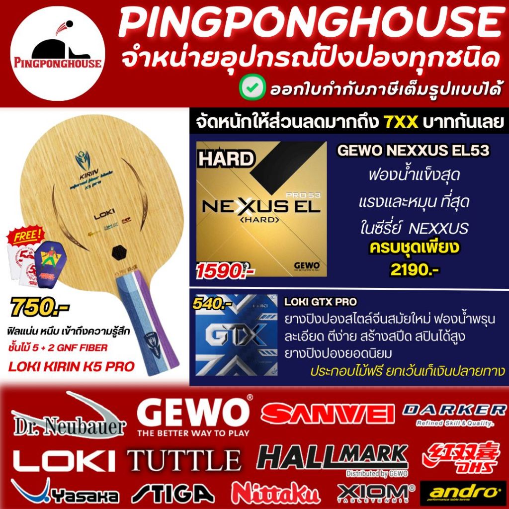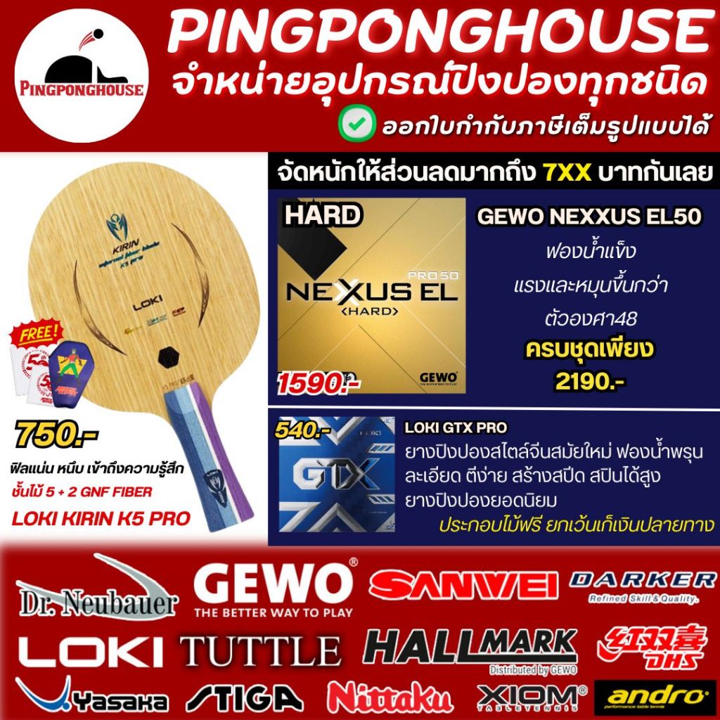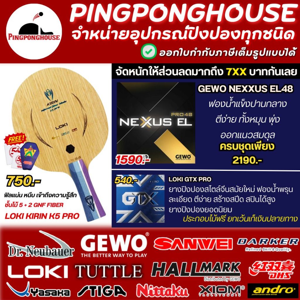 (ลดมากถึง 730.-) ไม้ปิงปองประกอบ Loki kirin K5 Pro Inner พร้อมยาง Gewo Series และ GTX I ร้านปิงปองเฮาส์