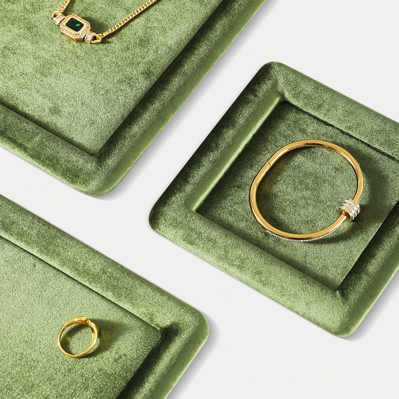 Yinbeini ถาดวางเครื่องประดับกำมะหยี่ สำหรับเก็บแหวน ต่างหู สร้อยคอ กำไล จานจัดเก็บเครื่องประดับแบบแบน P082