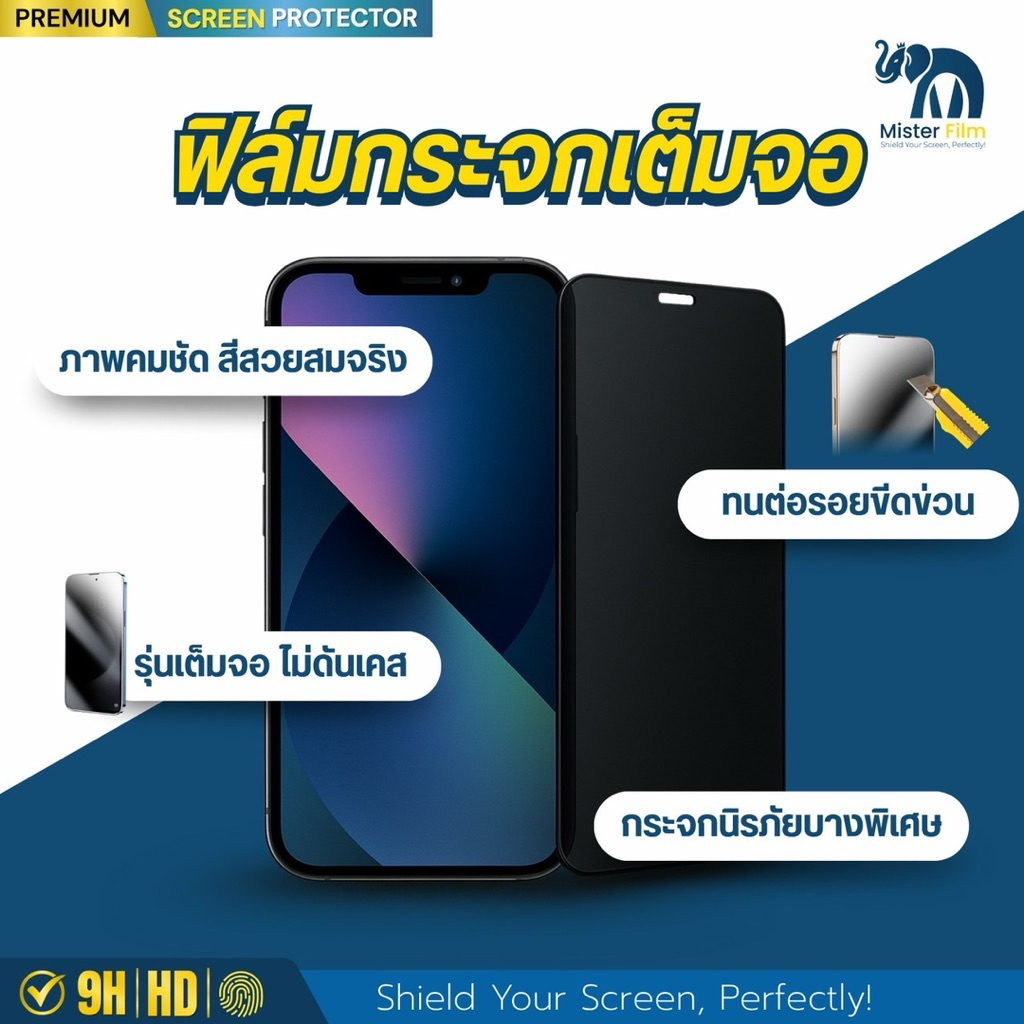 ฟิล์มกระจกกันมองกันเสือก Mister Film แบบเต็มจอความคมชัดสูง สำหรับiPhone17/16/15 Pro/13 Pro Max/12/11 pro max