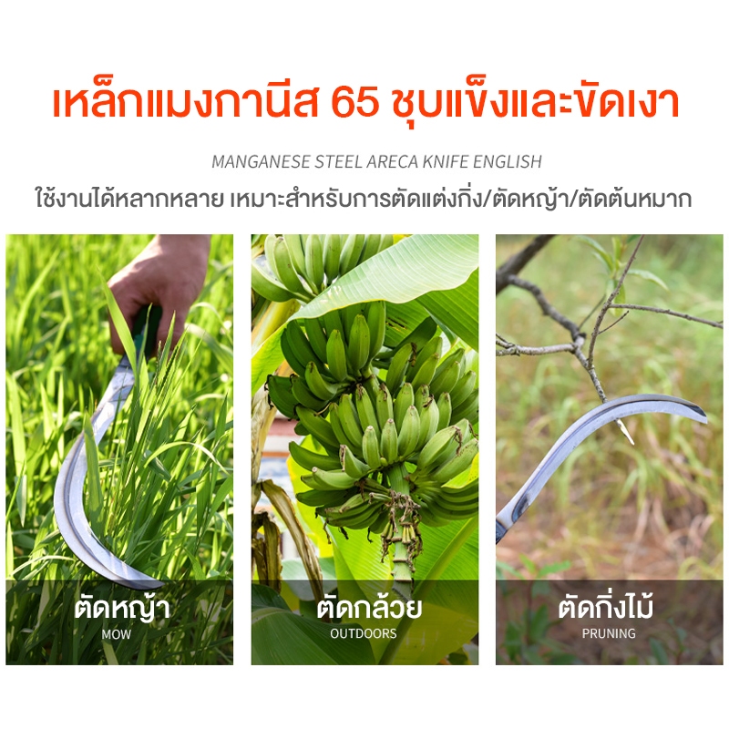 FOGO มีดถางหญ้า คียวตัดกิ่งไม้ เคียวเหล็กแมงกานีส เคียว เหล็ก เคียวด้ามยาว มีดด้ามยาว ใช้สำหรับ ตัดหญ้า ตัดแต่งกิ่งไม้