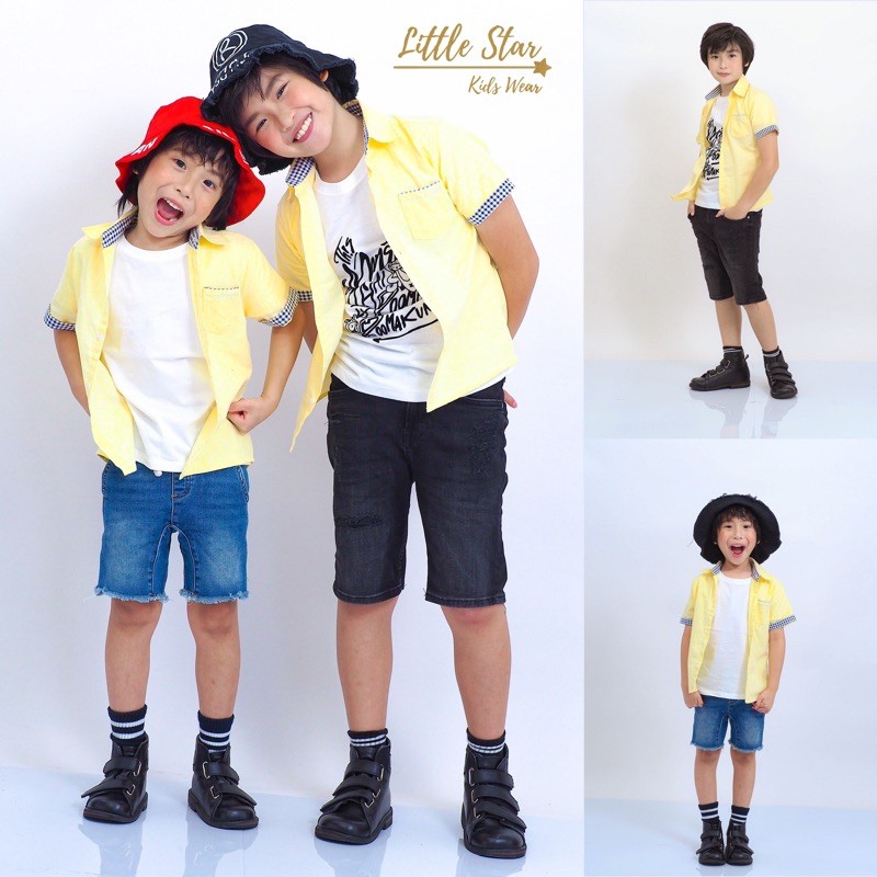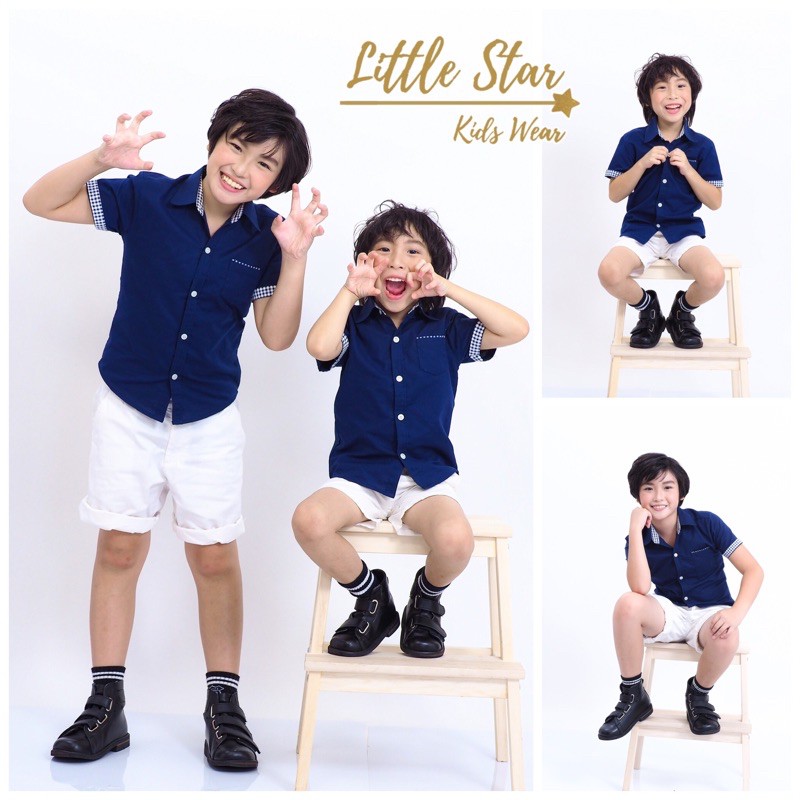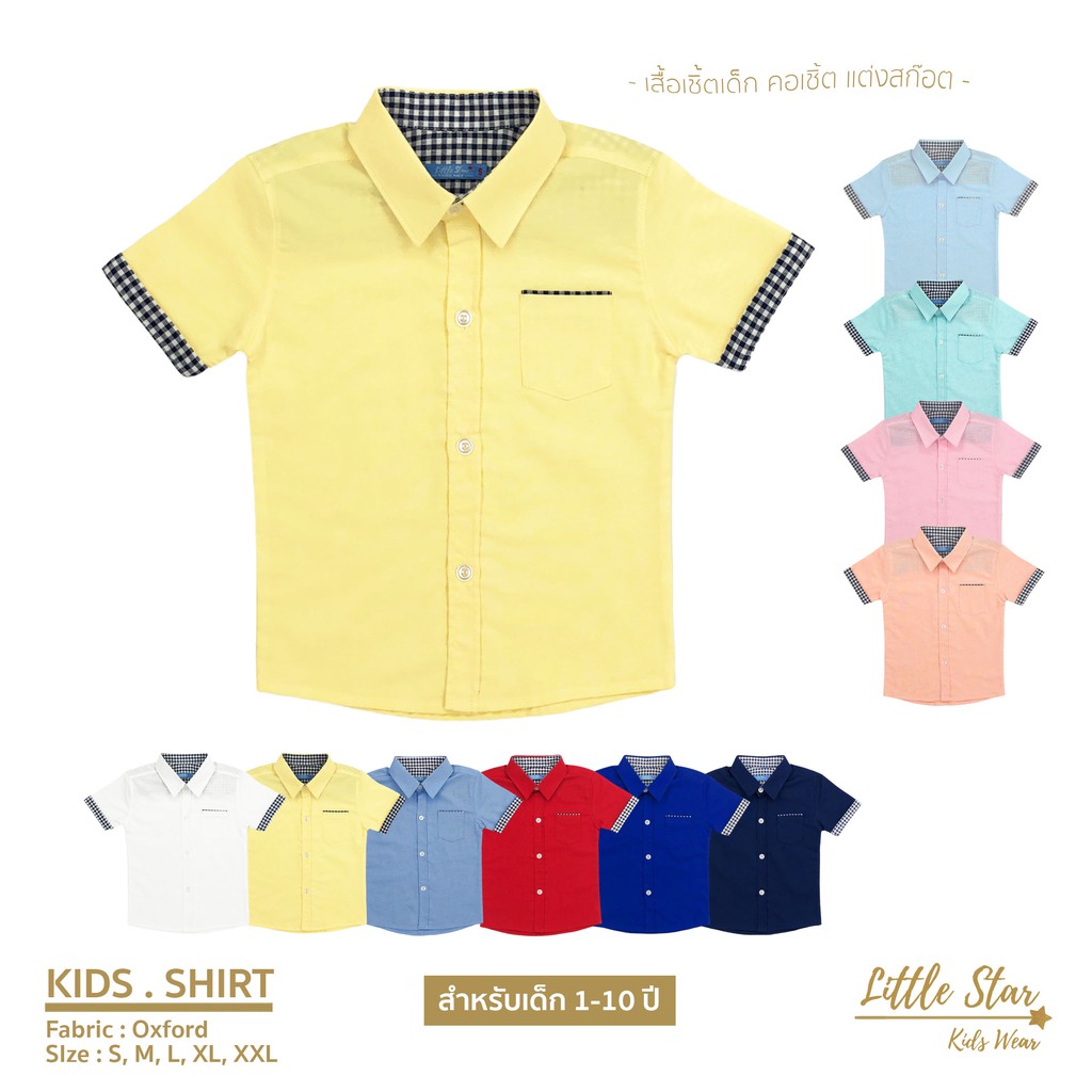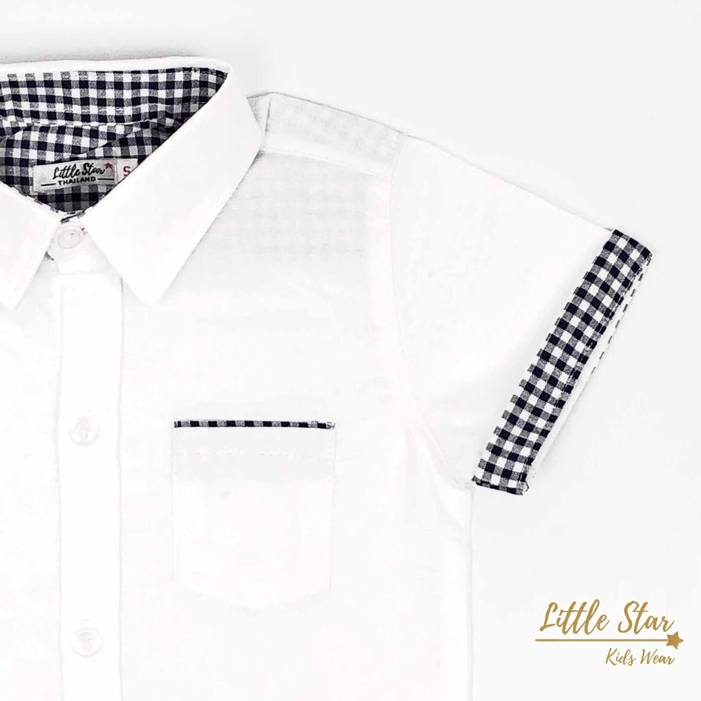 Littlestar เสื้อเชิ้ตเด็กสีพื้น คอเชิ้ตแต่งลายสก๊อต ผ้าอ๊อกซ์ฟอร์ดBCS0016