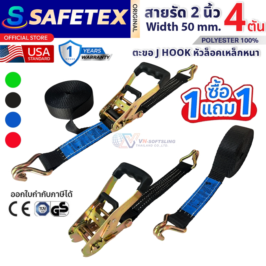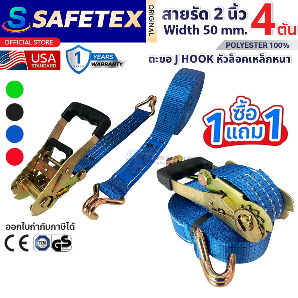 (1แถม1) สายรัดก๊อกแก๊ก 2 นิ้ว 4 ตัน SAFETEX USA สายรัดของ สายรัดรถบรรทุก สายรัดโพลีเอสเตอร์100%