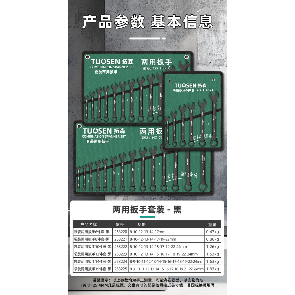 Tuosen ประแจ ชุดเครื่องมือ ประแจปากตาย 253220 253221 253222 253223 253224