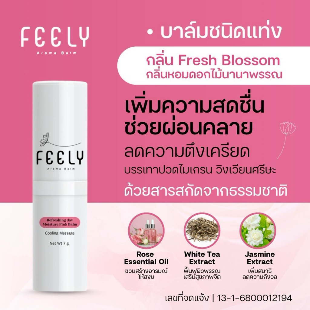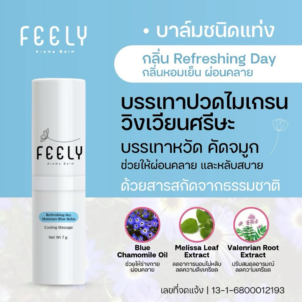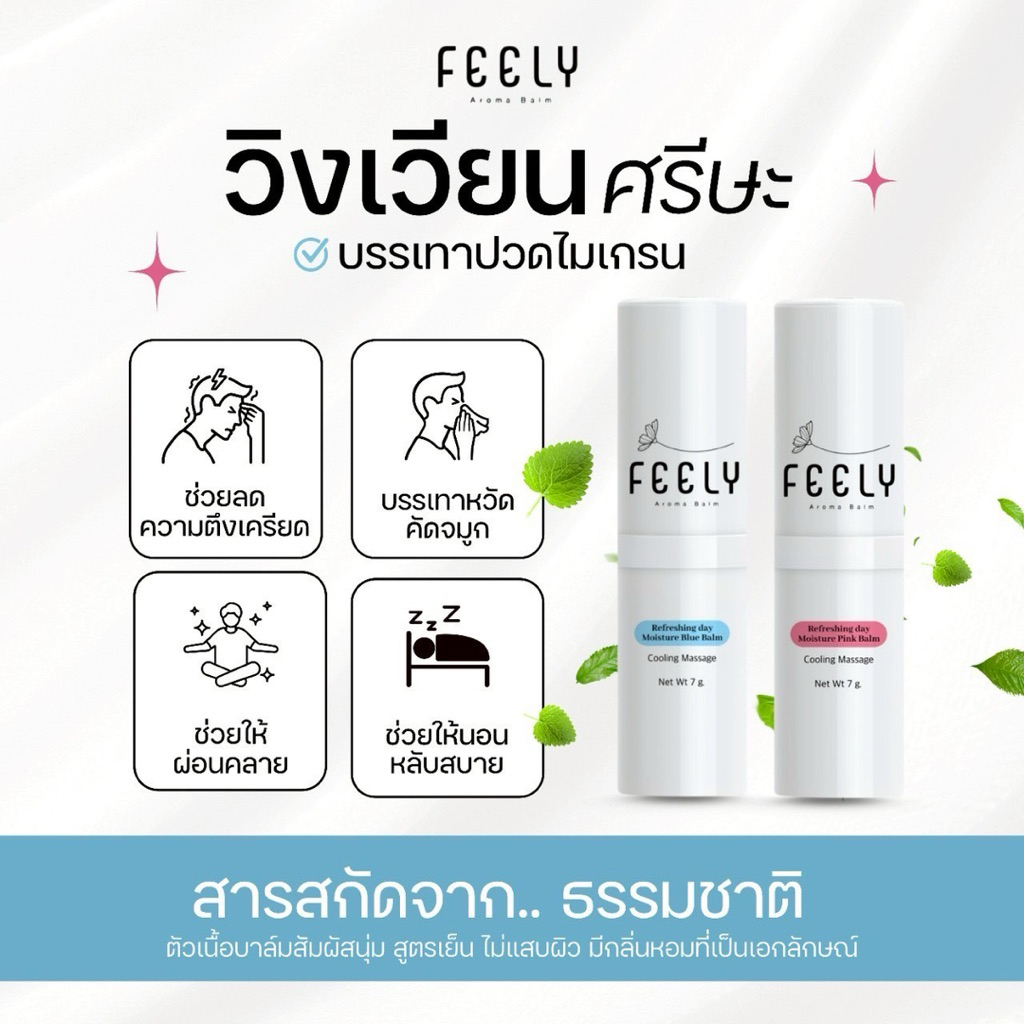 ส่งฟรี!! FEELY Balm ฟีลลี่บาล์มอโรม่า สูตรเย็น 2สี 2กลิ่น หอมเย็น สดชื่น ผ่อนคลาย แก้วิงเวียน ปวดหัว ขนาด 7กรัม