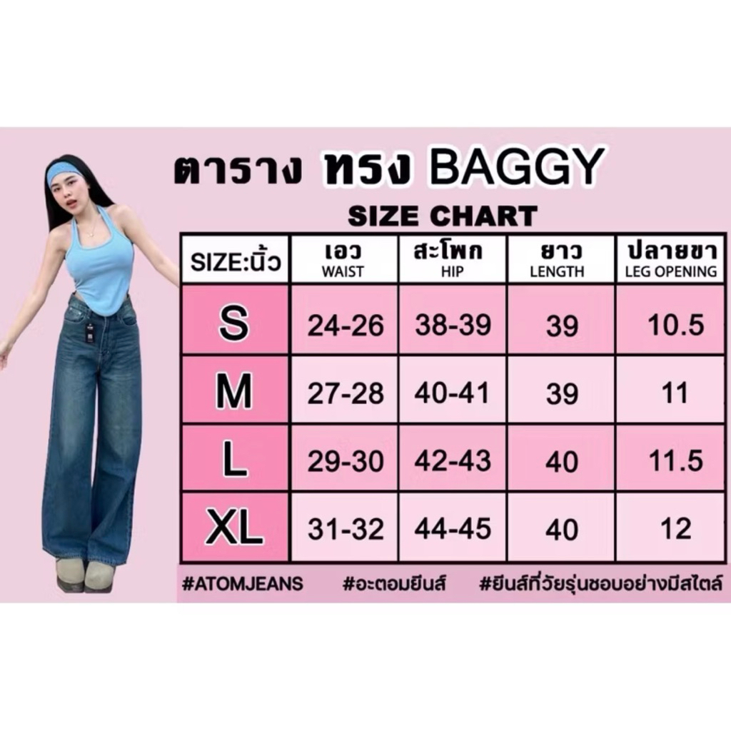 พร้อมส่ง!! (AT4012) ป้ายATOM กางเกงยีนส์ทรงBaggyS-XL
