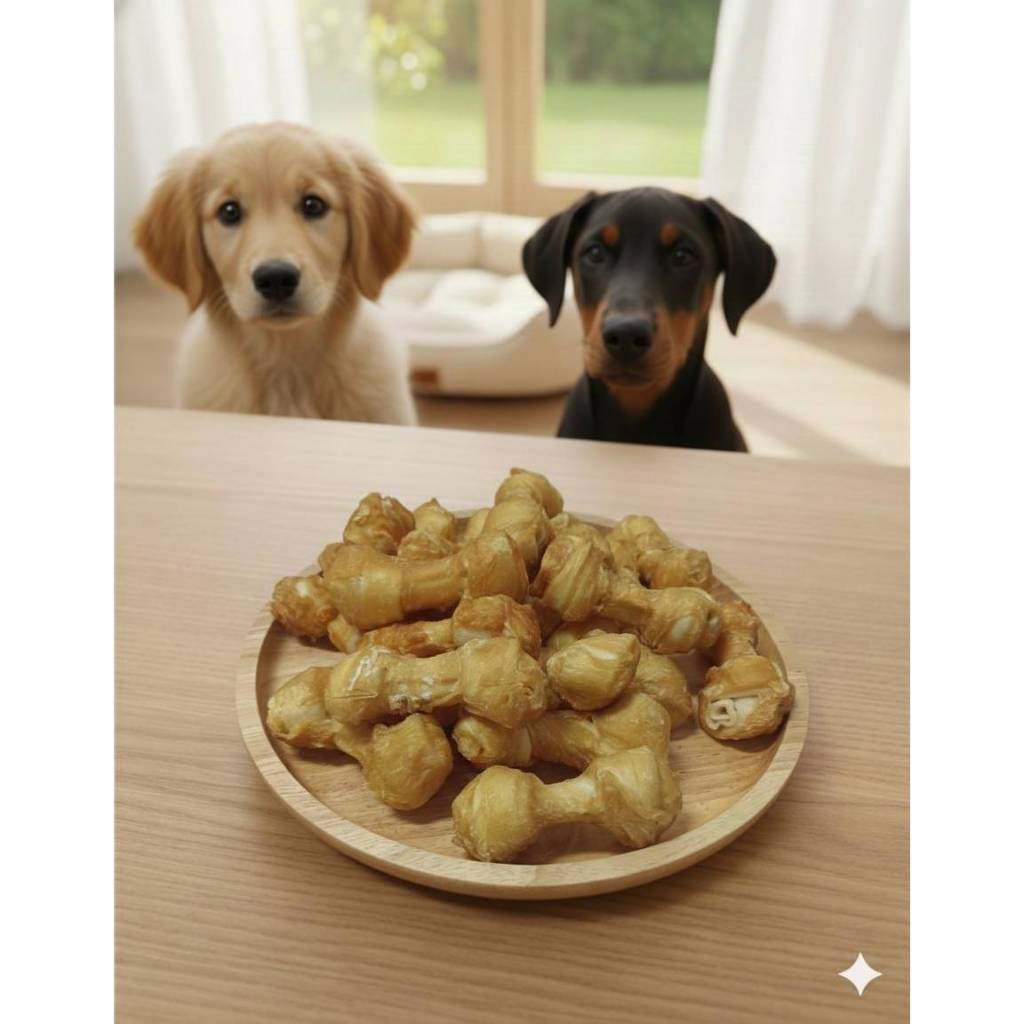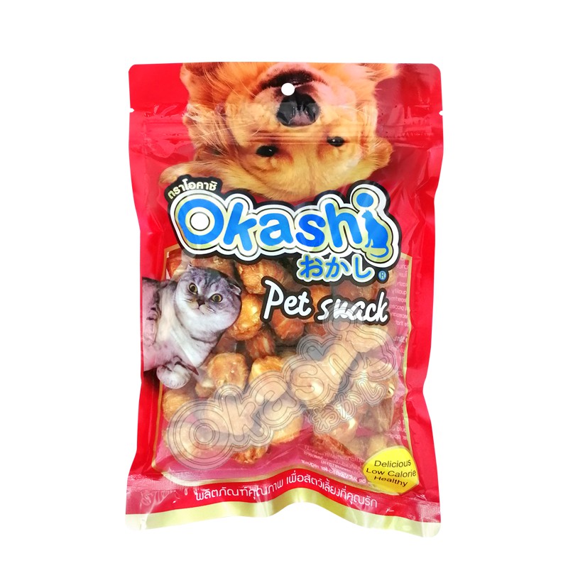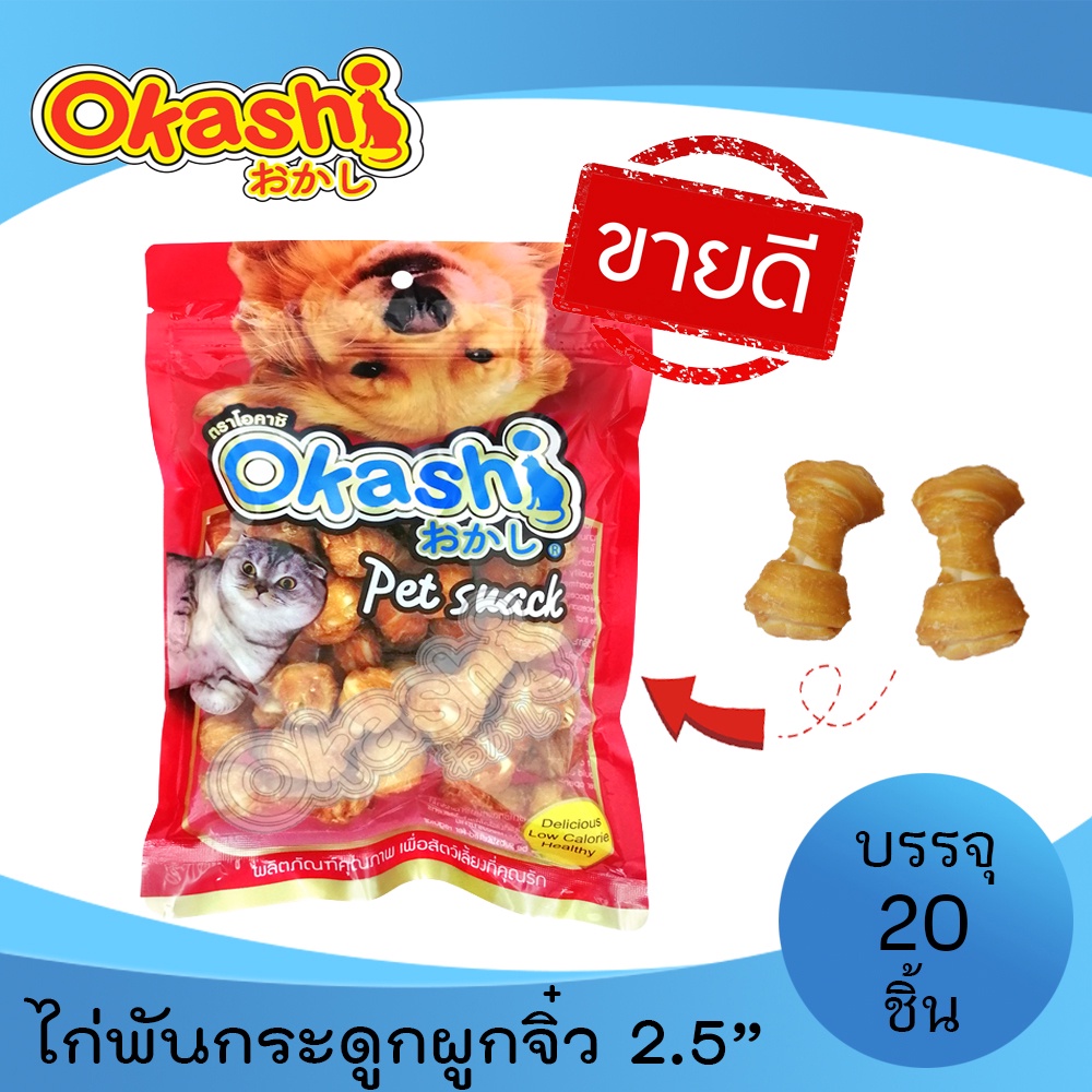 OKASHI ขนมสุนัข ขนมสัตว์เลี้ยง ทำจากเนื้อไก่ (ไก่พันกระดูกผูกจิ๋ว 2.5” 20 ชิ้น)