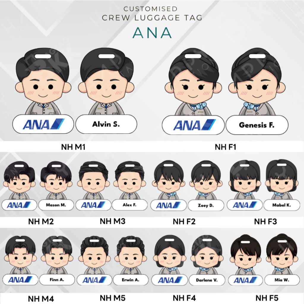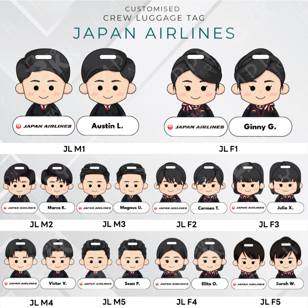 Happlife Personalized Cabin CrewTag - Japan + Korea Airliners นักบินและลูกเรือ ป้ายแท็กกระเป๋าแบบพกพา ป้ายชื่อนักบิน