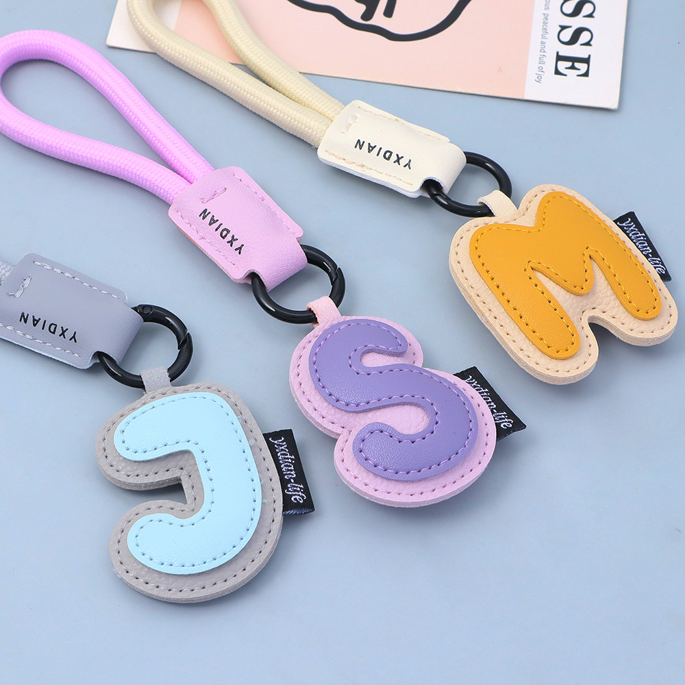 หนังประณีต 26 ตัวอักษรพวงกุญแจแหวนที่มีสีสันป้องกันการสูญหายเชือกถักพวงกุญแจกระเป๋าสาว ทําเอง ออร์นามสกุล อุปกรณ์กุญแจรถ