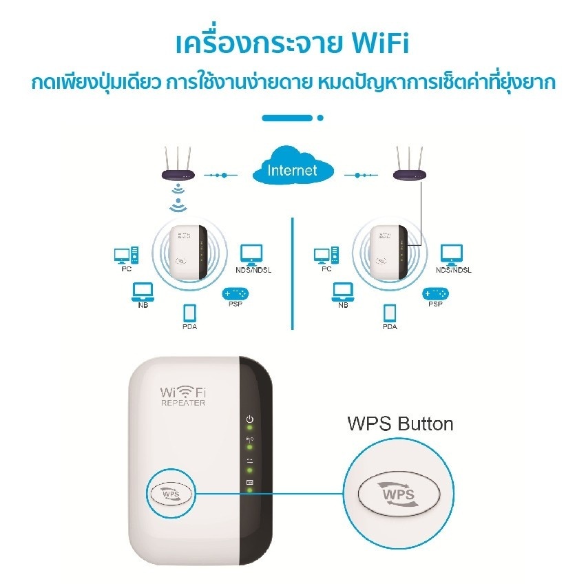 Wifi Repeater ตัวกระจายสัญญาณไวไฟ ตัวกระจายไวไฟ ตัวดึงสัญญาณ ขยายเครือข่ายไร้สาย Wifi Range Extender
