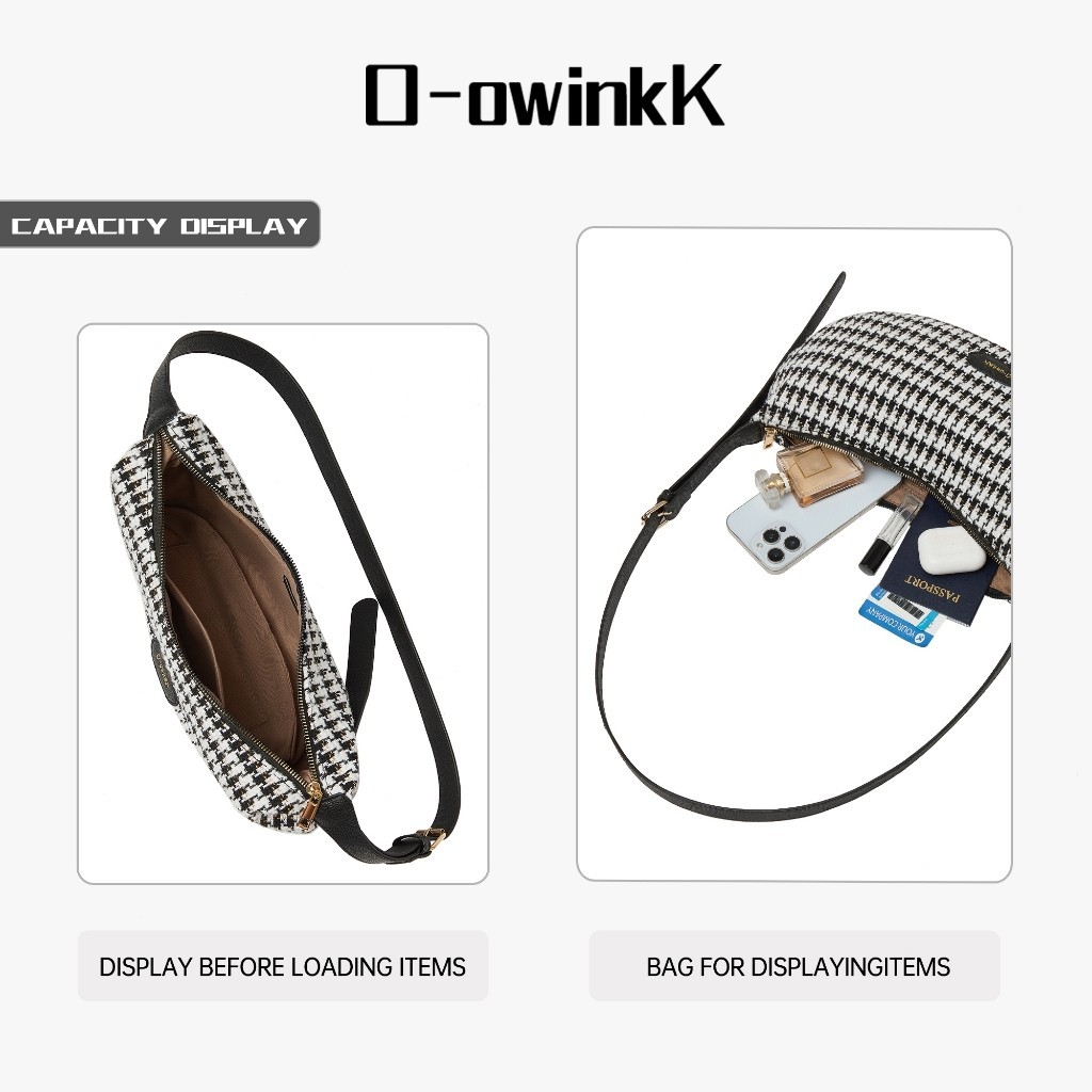 O-owinkK กระเป๋าผ้า วัสดุแข็งแรง เนื้อสัมผัสนุ่ม ซิปปิด สายสะพายไหล่ปรับได้ 7 เกียร์