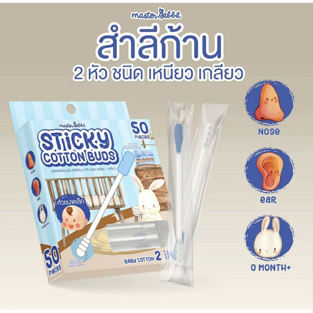 Master Rabbit สำลีก้านสองหัวแคะหู ทำความสะอาดสำหรับลูกน้อย Sticky Cotton Buds