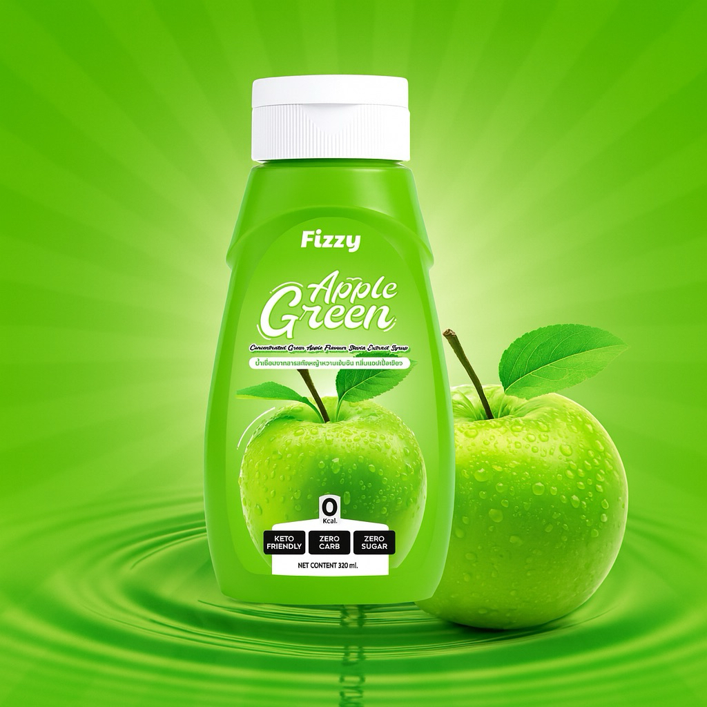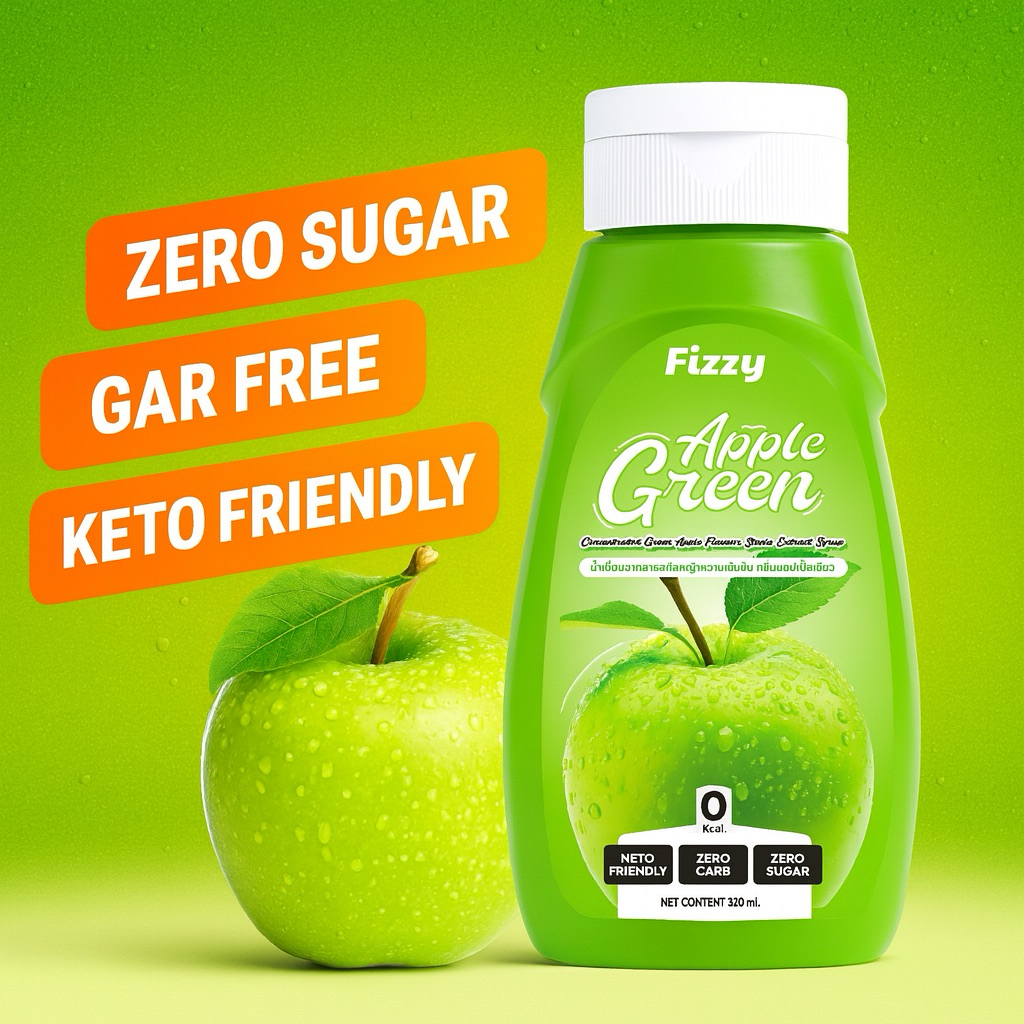 ฟรีซซี่ คีโตไซรัป แอปเปิ้ลเขียว หอม หวานอมเปรี้ยวนิดๆสดชื่น 320ml.