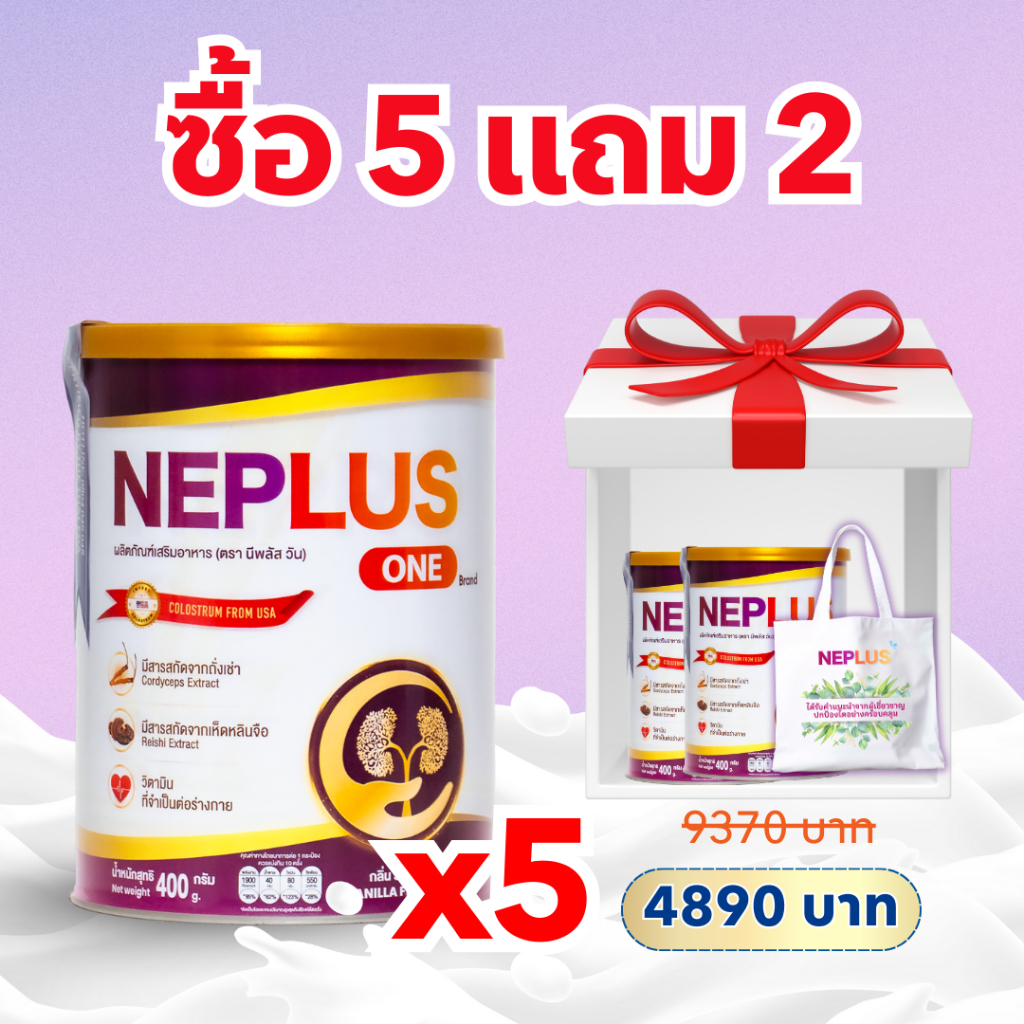 [ซื้อ 5 แถม 2 + 1 ถุง] คอมโบ 2 เดือน Neplus One – โภชนาการสนับสนุนไตให้แข็งแรง | 7 x 400 ก. (พร้อมของขวัญสุดพิเศษ)