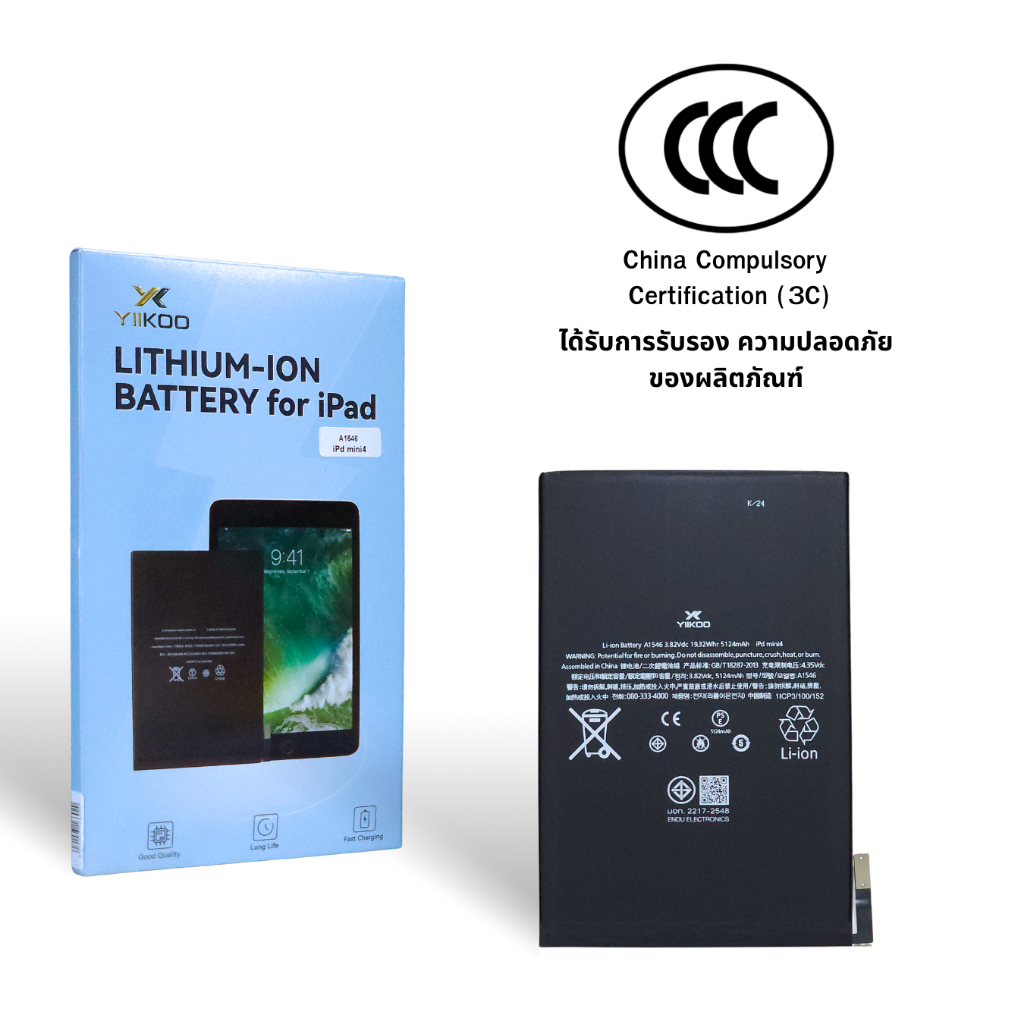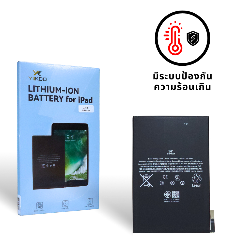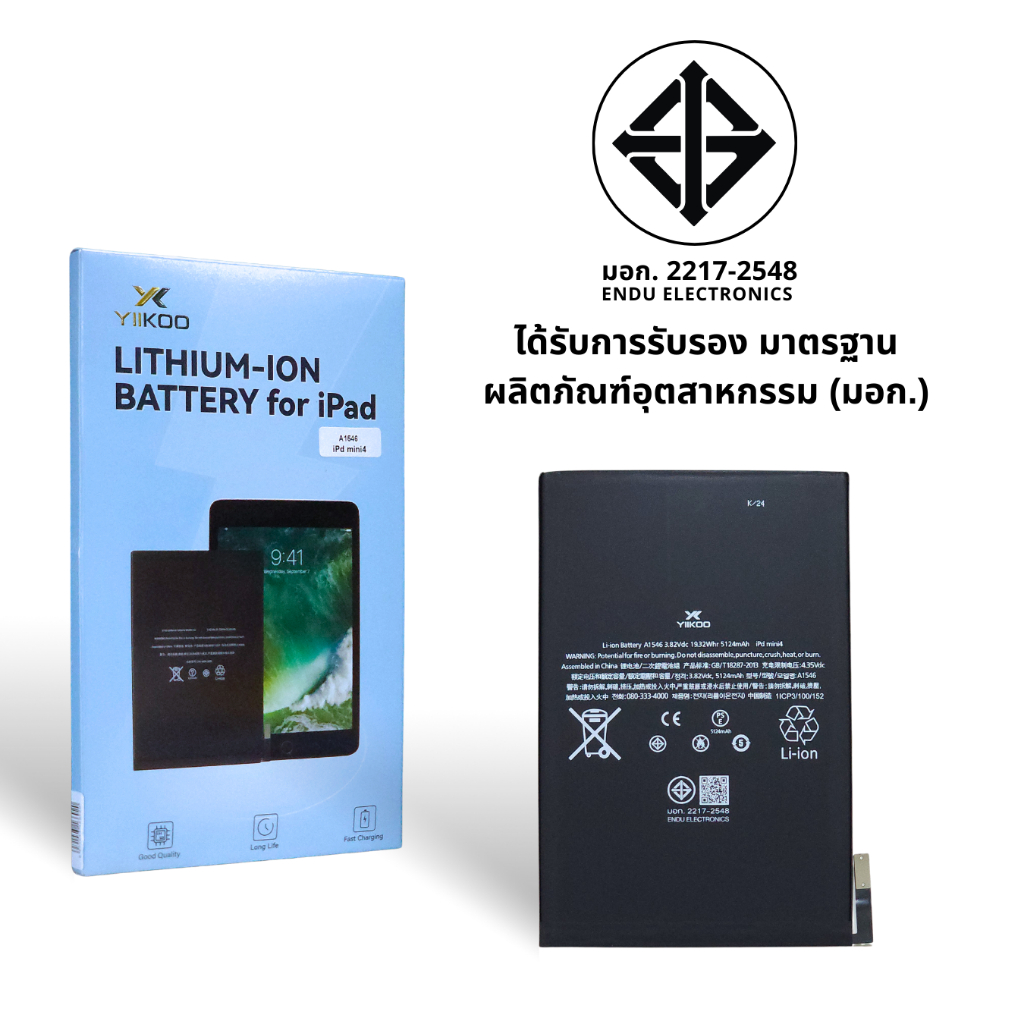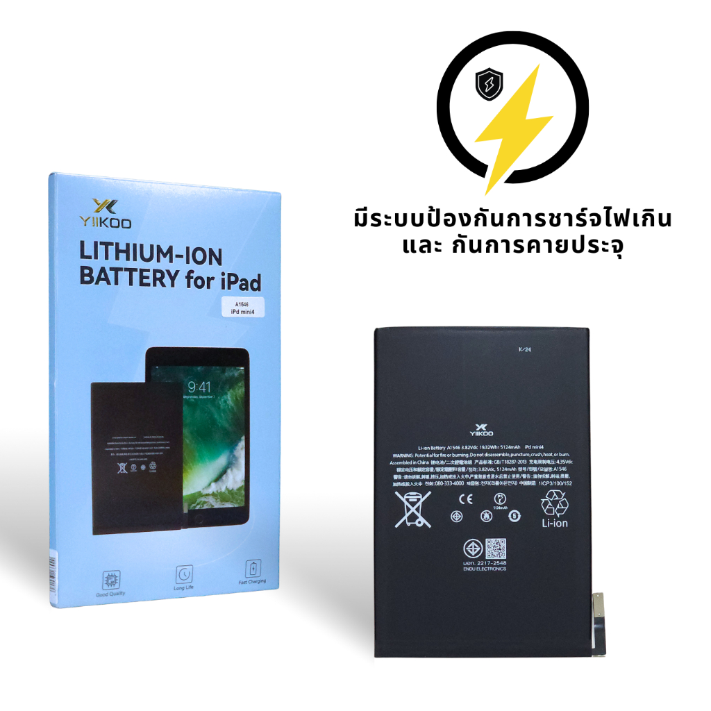 แบตเตอรี่ YIIKOO สำหรับ IPad mini 4 (A1546) 5124mAh รับประกัน18เดือน