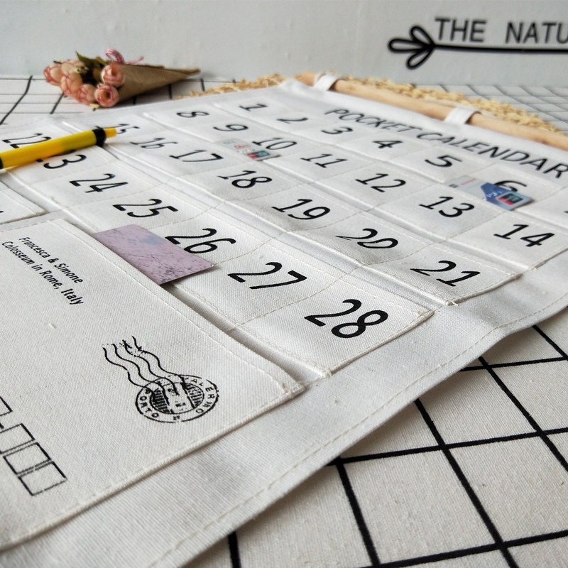 ปฏิทินออมเงิน ผ้าแคนวาส ช่องเสียบธนบัตร นำไปแขวนได้ DIY