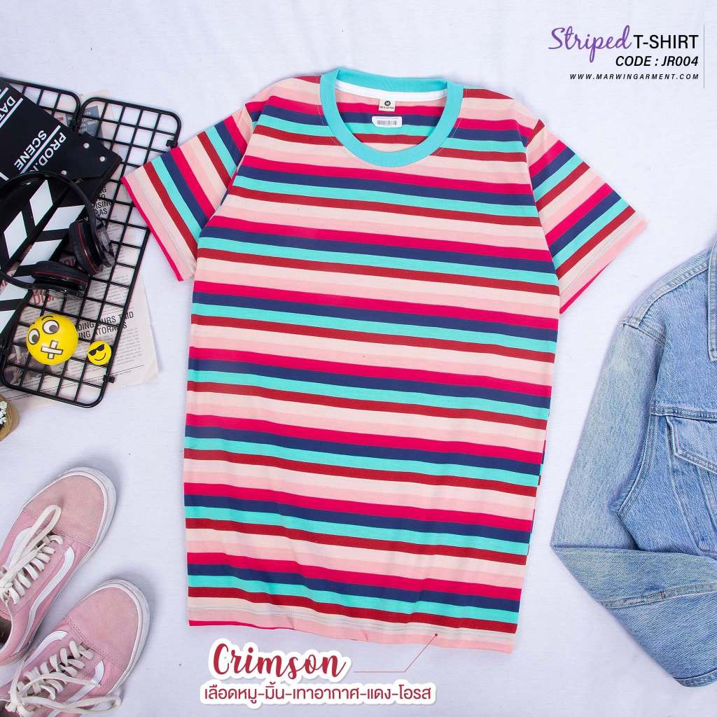 เสื้อยืดริ้ว JR004 เสื้อคู่ลายทาง ริ้วสวย สีสดใส เนื้อผ้าคอตตอน ใส่สบาย สินค้าพร้อมส่ง
