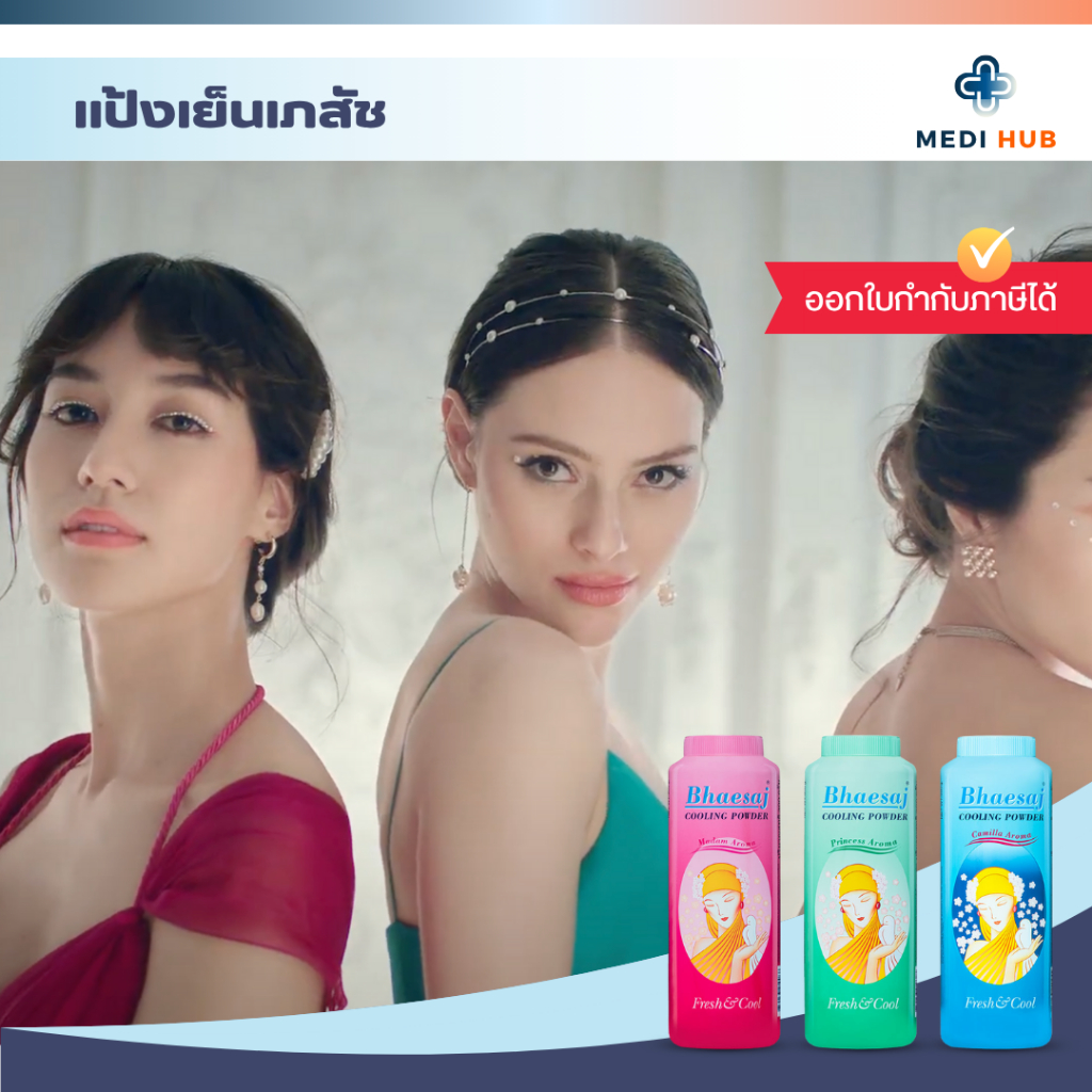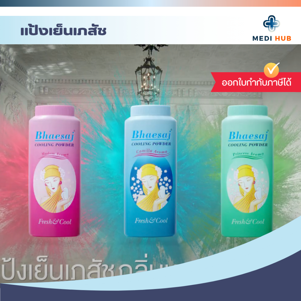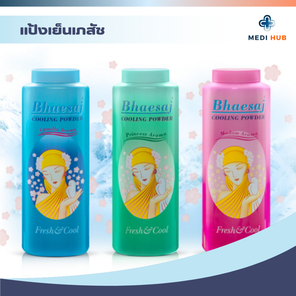 แป้งเภสัช (จำนวน 1 ขวด) แป้งเย็นทาตัว มี 3 กลิ่น มาดาม คามิลล่า ปริ๊นเซส หอมสดชื่น
