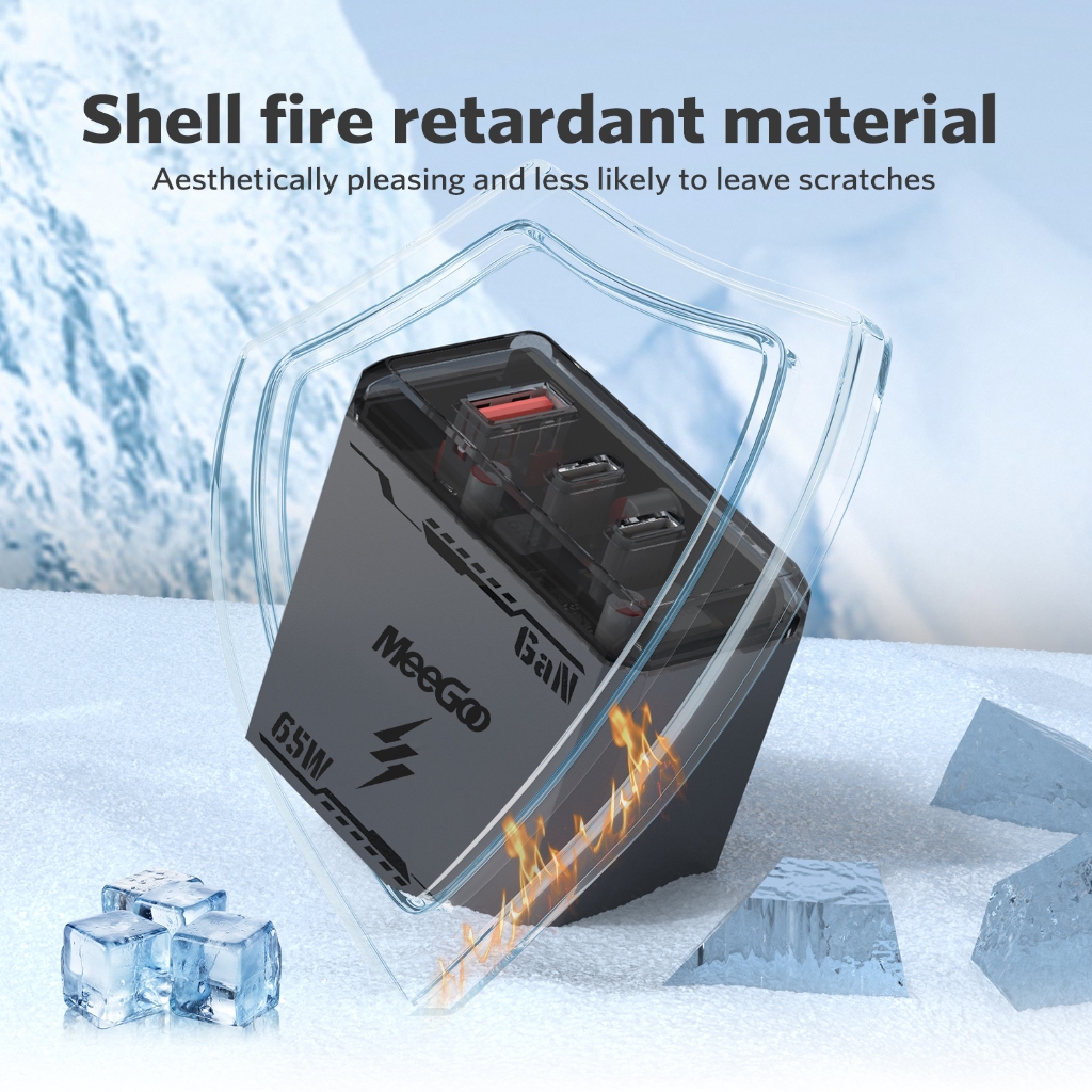 MEEGOO หัวชาร์จเร็ว 65W GAN ขาปลั๊กพับได้ เครื่องชาร์จเร็ว 3 พอร์ต PD*2+QC3.0 อะแดปเตอร์ชาร์จเร็ว TISI STANDARD