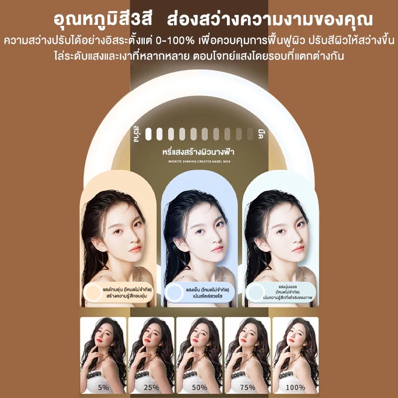 ชุดไฟไลฟ์สด ไฟวงแหวน LED RING LIGHT ไฟแต่งหน้า 16-26CM พร้อมขาตั้ง TRIPOD ปรับได้3สี ความสว่าง 10 ระดับ