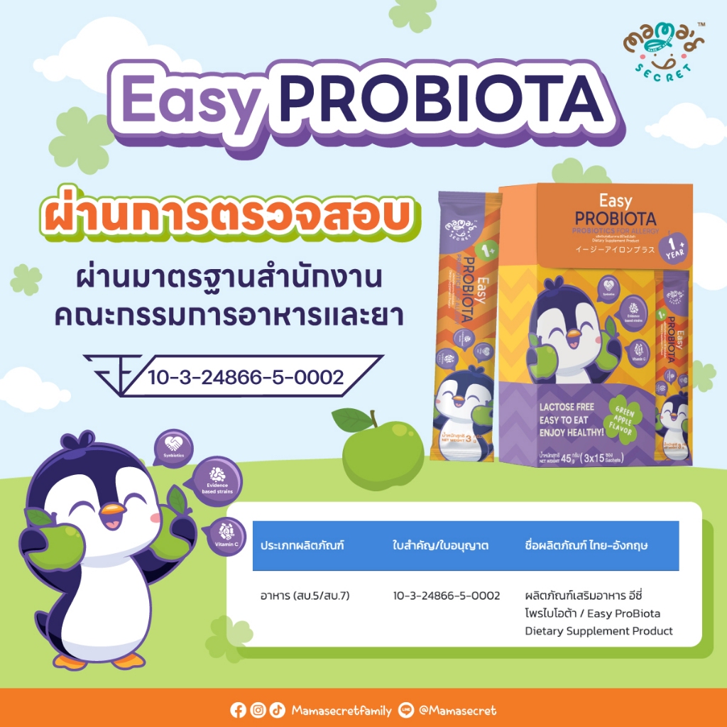 Easy Probiota ลูกป่วยบ่อย โพรไบโอติกส์ภูมิแพ้ เกรดพรีเมี่ยม มีงานวิจัยในเด็ก จากแลป