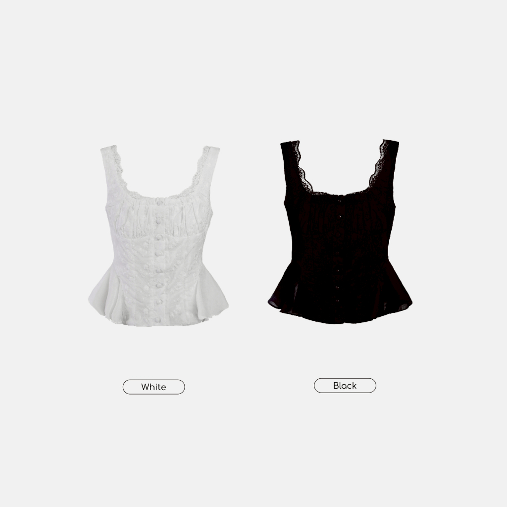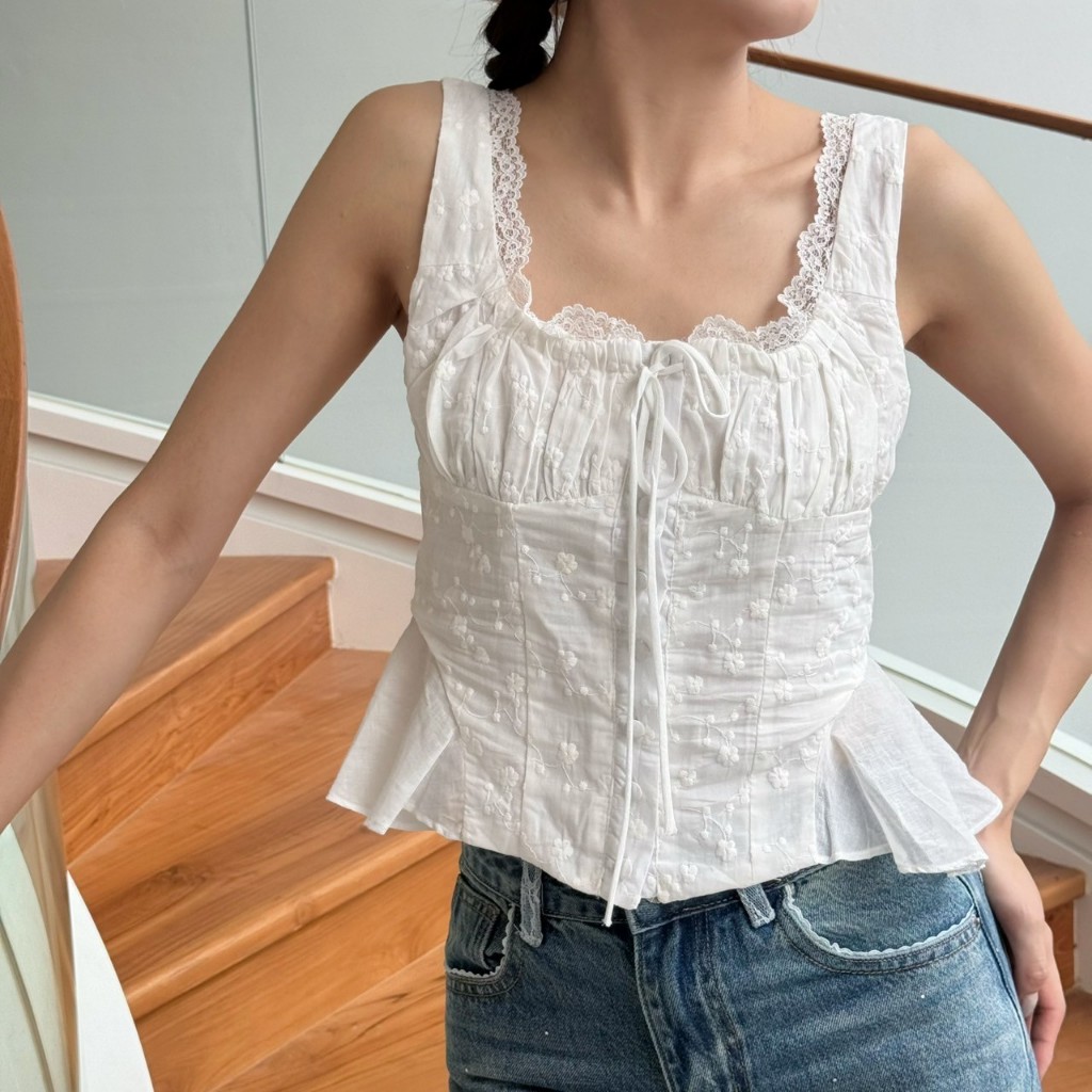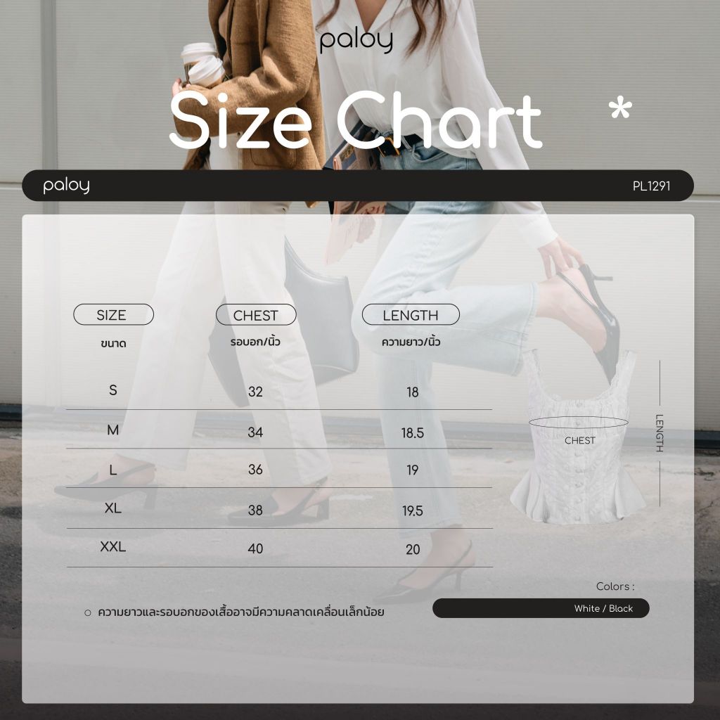 Paloy - PL1291 เสื้อแฟชั่นขอบลูกไม้ฉลุปักดอกไม้ กระดุมหน้า