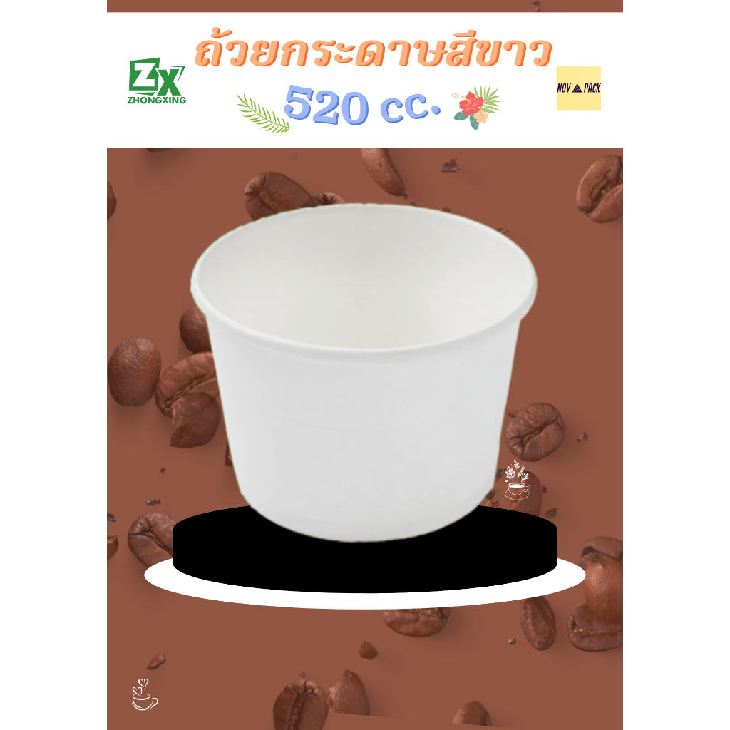 Novapack ถ้วยกระดาษ สีขาว 520 cc. ( 1000 ชิ้น / ลัง)