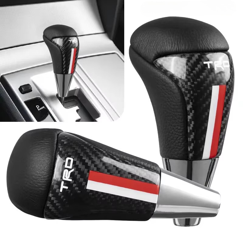 กรัม ทีร์ กีฬารถจัดแต่งทรงผมเกียร์เปลี่ยนลูกบิดอลูมิเนียมคาร์บอนไฟเบอร์หนังสีแดง/สีดําสําหรับ