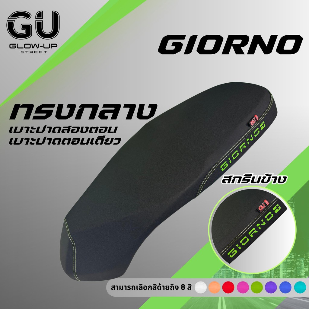 เบาะปาด จีออโน่ Giorno ใส่ได้ทุกปี สกรีนข้างมีให้เลือก 8 สี หนัง กันน้ำ ทรงกลาง มีทั้ง ตอนเดียว สองตอน เบาะมอเตอร์ไซค์