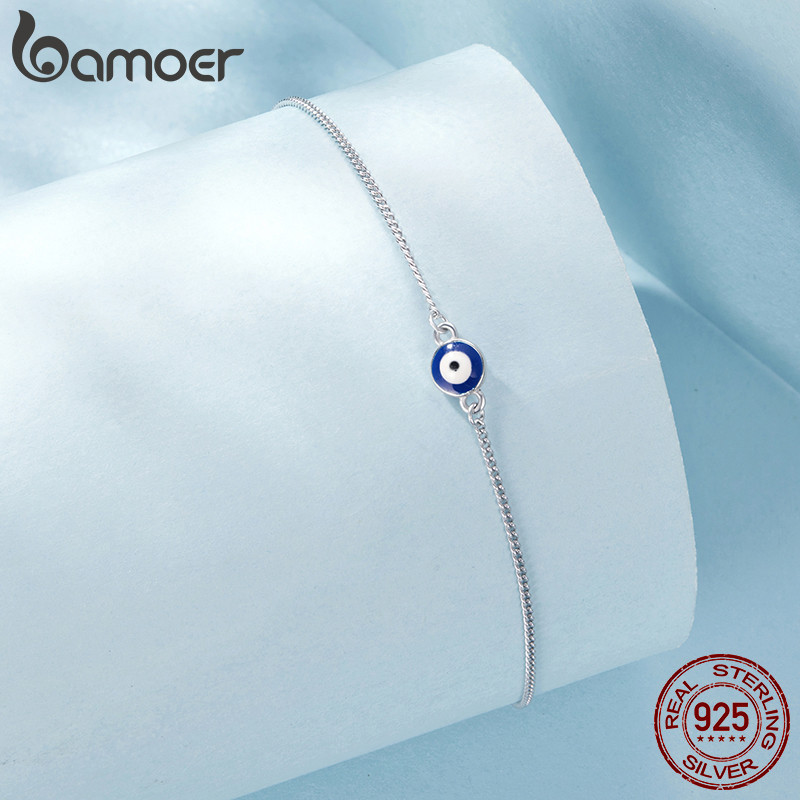Bamoer สร้อยข้อเท้าเงินแท้ 925 สีฟ้า Evil Eye เครื่องประดับสีเงินของขวัญสำหรับผู้หญิง