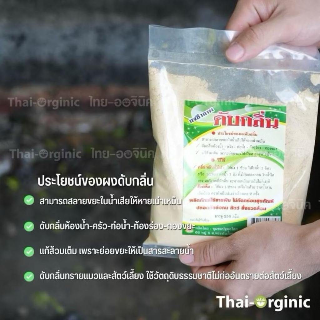 ผงชีวภาพดับกลิ่น ดับกลิ่นห้องน้ำ ห้องส้วม ท่อน้ำทิ้ง แก้ปัญหาส้วมเต็ม ดับกลิ่นทรายแมว ไร้สารเคมี 100%