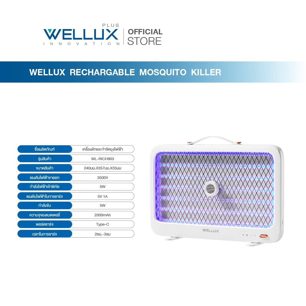 WELLUX เครื่องดักกำจัดยุงไฟฟ้ามินิมอล 5W แบบชาร์จไฟได้ Rechargeable Mosquito Killer 903