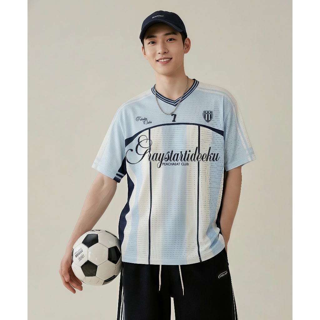 B&R สไตล์อเมริกันวินเทจ T-Shirt เสื้อยืดลายทาง แขนเสื้อ สไตล์สปอร์ต ระบายอากาศได้ดีใส่สบาย แห้งเร็ว ลำลองแมทช์ลุคง่าย