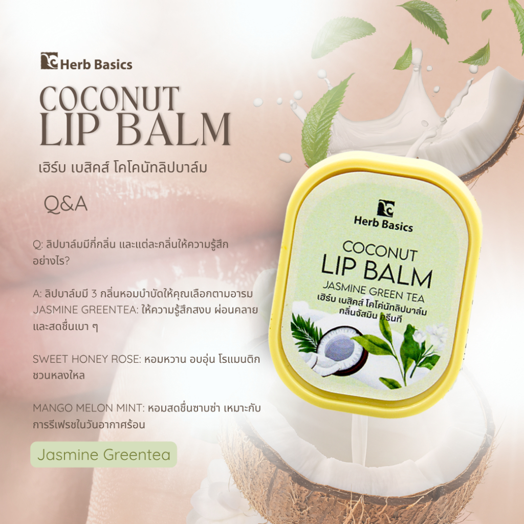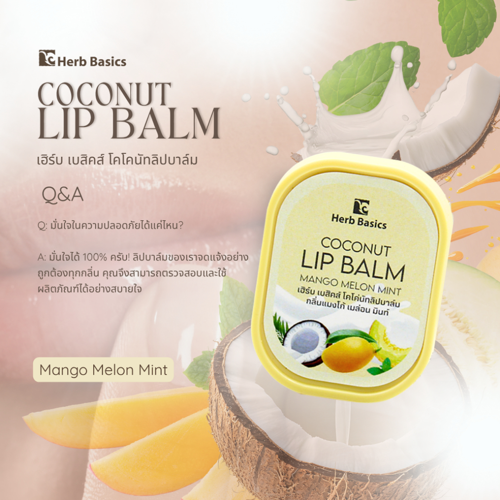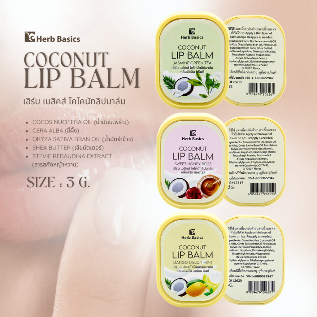Herb Basics Coconut Lip Balmลิปบาล์มมะพร้าว Coconut Lip Balm ลดริมฝีปากแห้งแตกและบำรุง