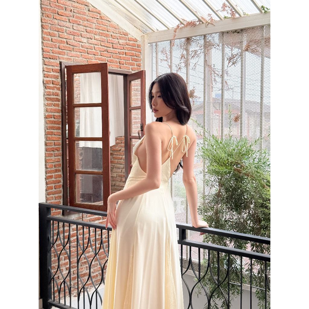 The Muse Maxi Dress เดรสยาวดีไซน์หลังเปิดกว้างงานดีเทลลูกไม้ช่วงเอวและกระโปรงพริ้ว ผูกและปรับได้ เพิ่มลูกเล่นด้วยการแต่