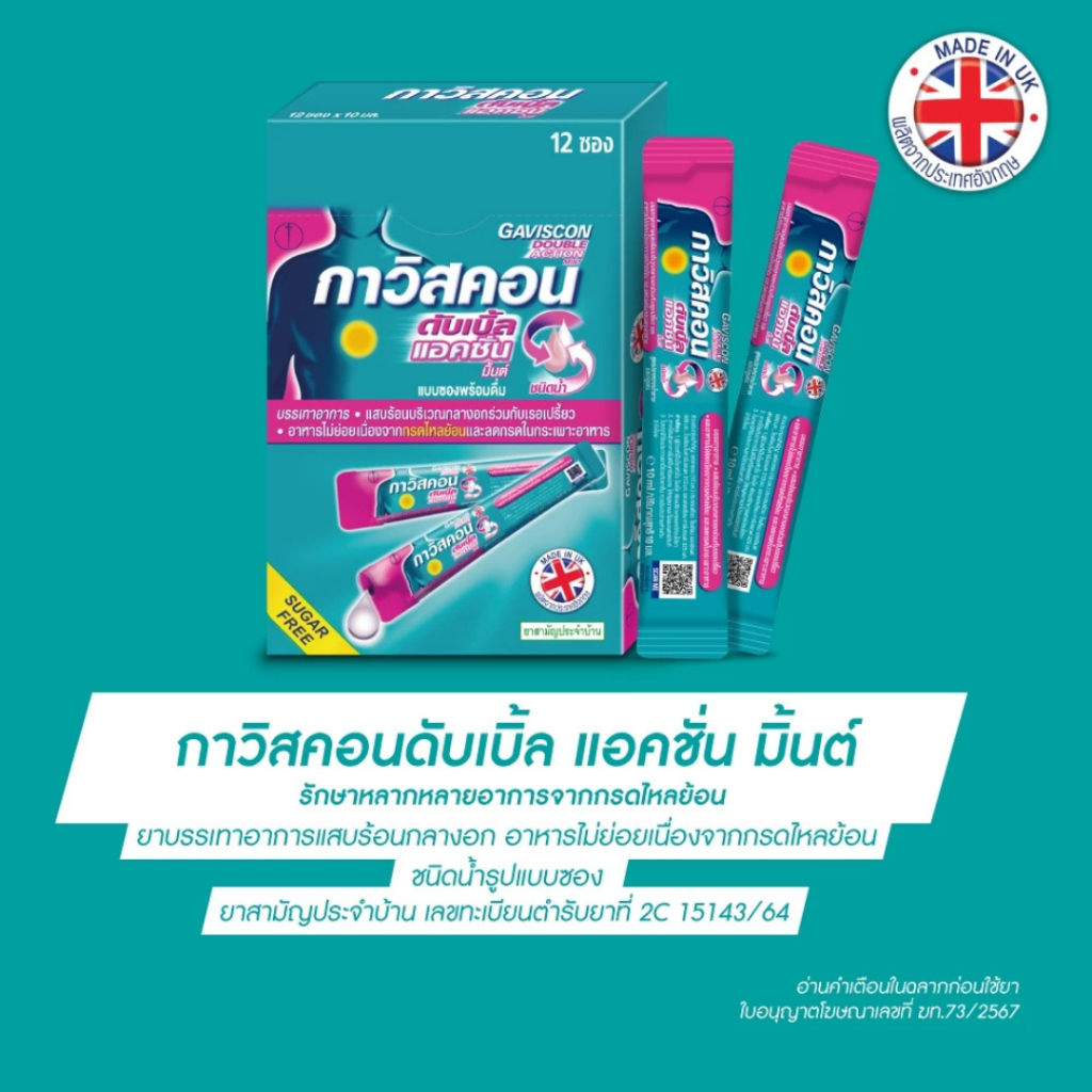 [ยกกล่อง] 12ซอง Gaviscon DOUBLE ACTION / Suspension กาวิสคอน กรดไหลย้อน ยาสามัญประจำบ้าน #L1