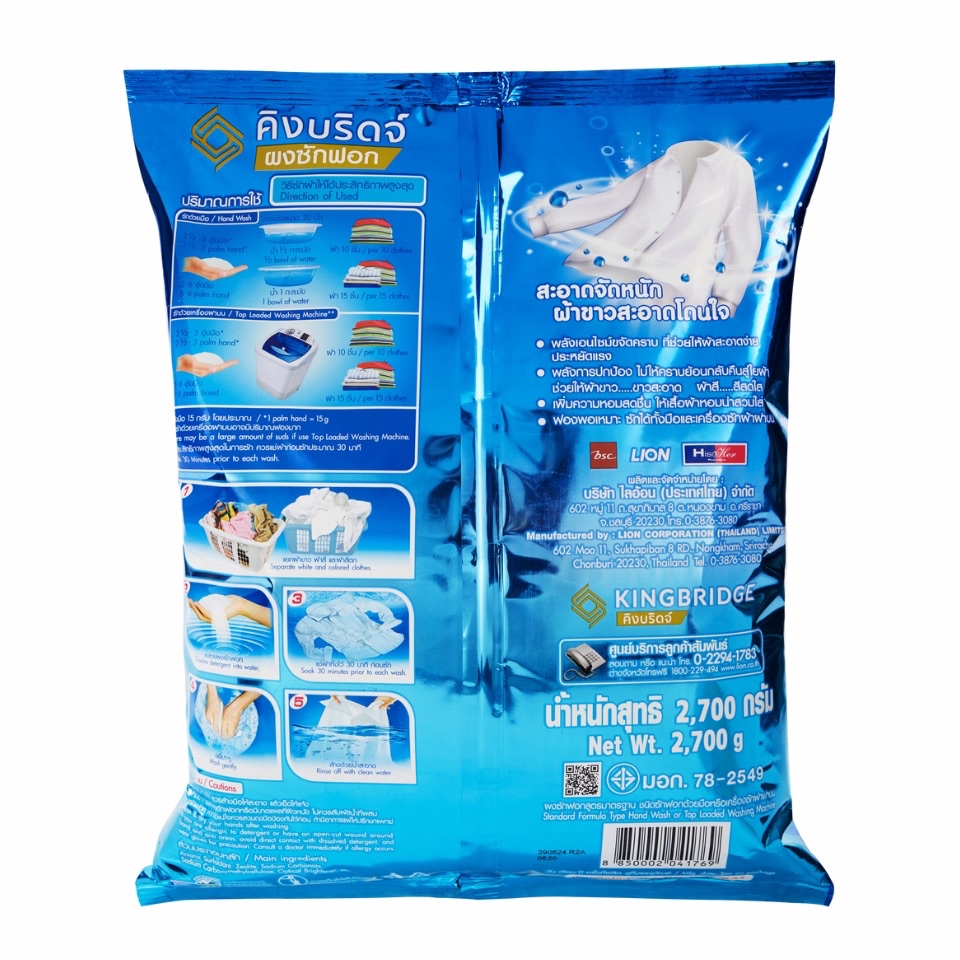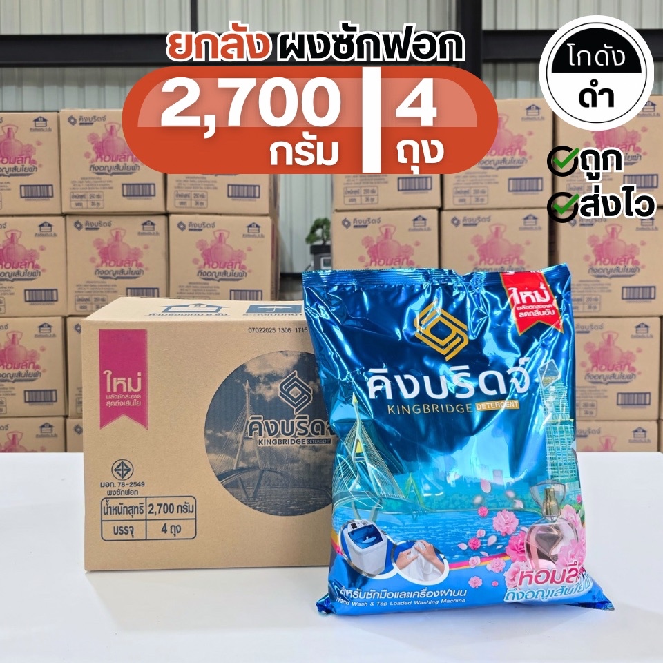 King Bridge ผงซักฟอก คิงบริดจ์ 2700กรัม x 4ถุง หอมติดผ้ายาวนาน ลดกลิ่นอับ ซักสะอาดลึก ไม่กัดสี ไม่มีแป้ง