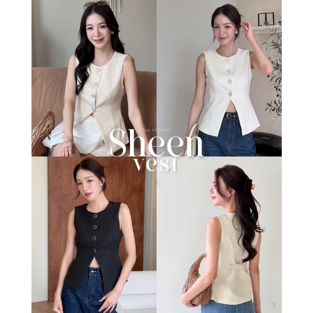 TOPBASIX - Sheen vest top เสื้อกั๊กกระดุมมุก