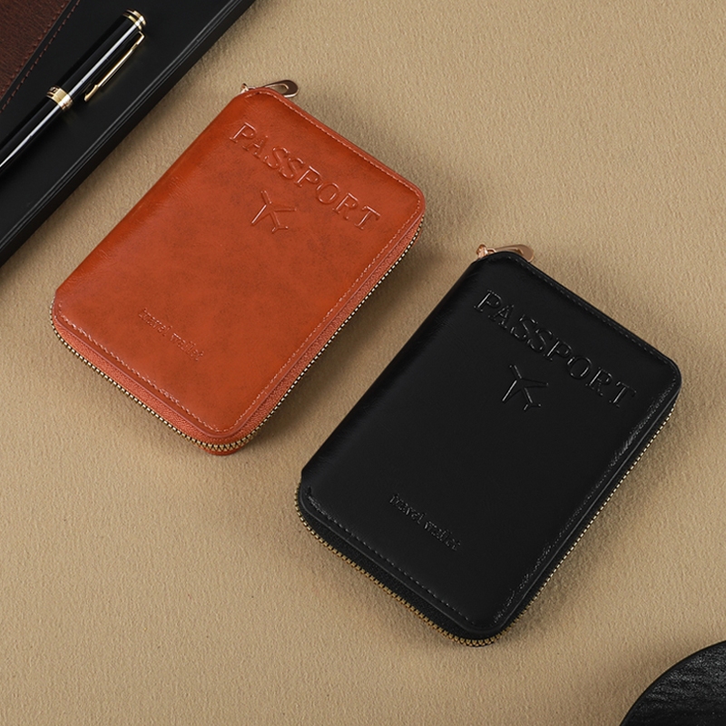 กระเป๋าหนังพาสปอร์ตมุมกลม กระเป๋า RFID แฟชั่น กระเป๋าใส่บัตรหลายฟังก์ชัน